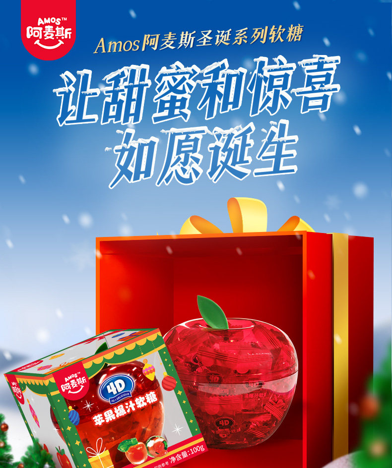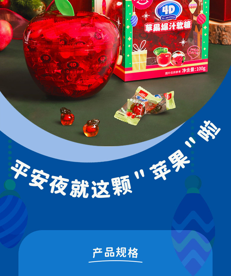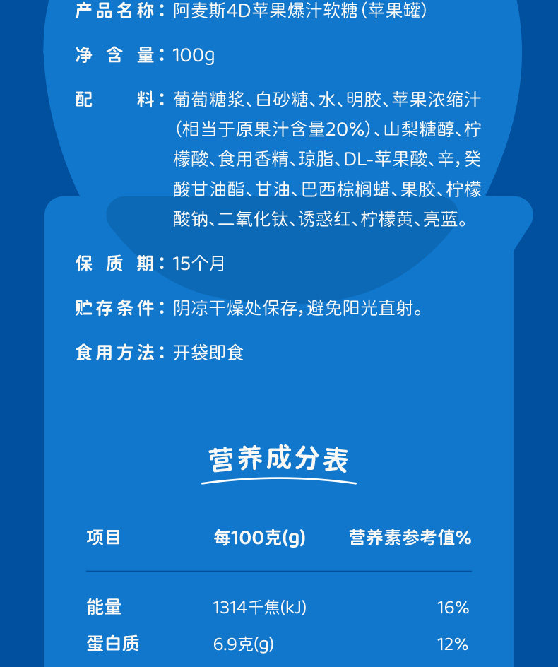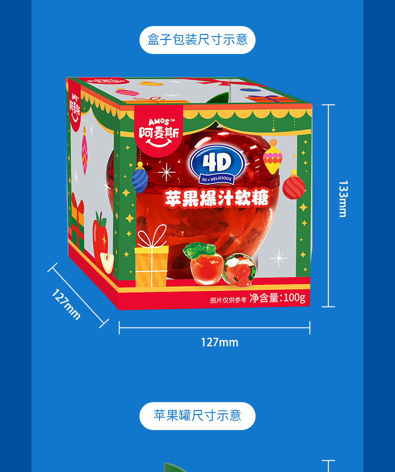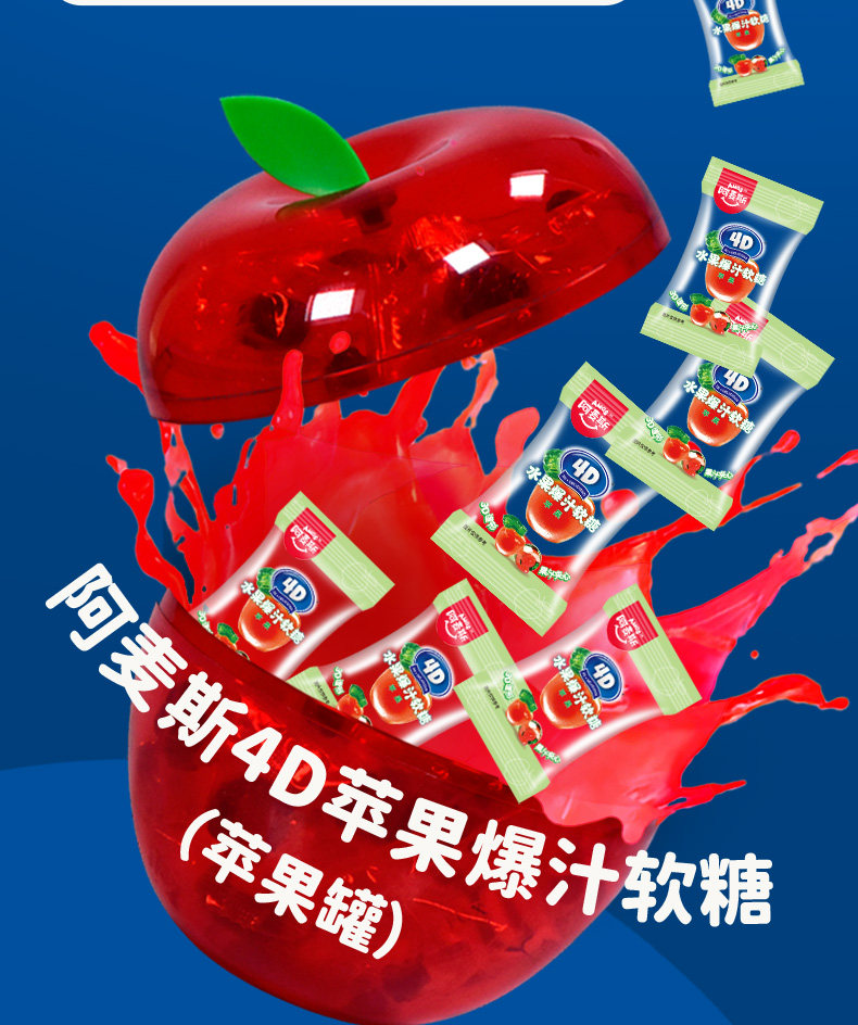 阿麦斯4D苹果爆汁软糖100g(苹果罐)
