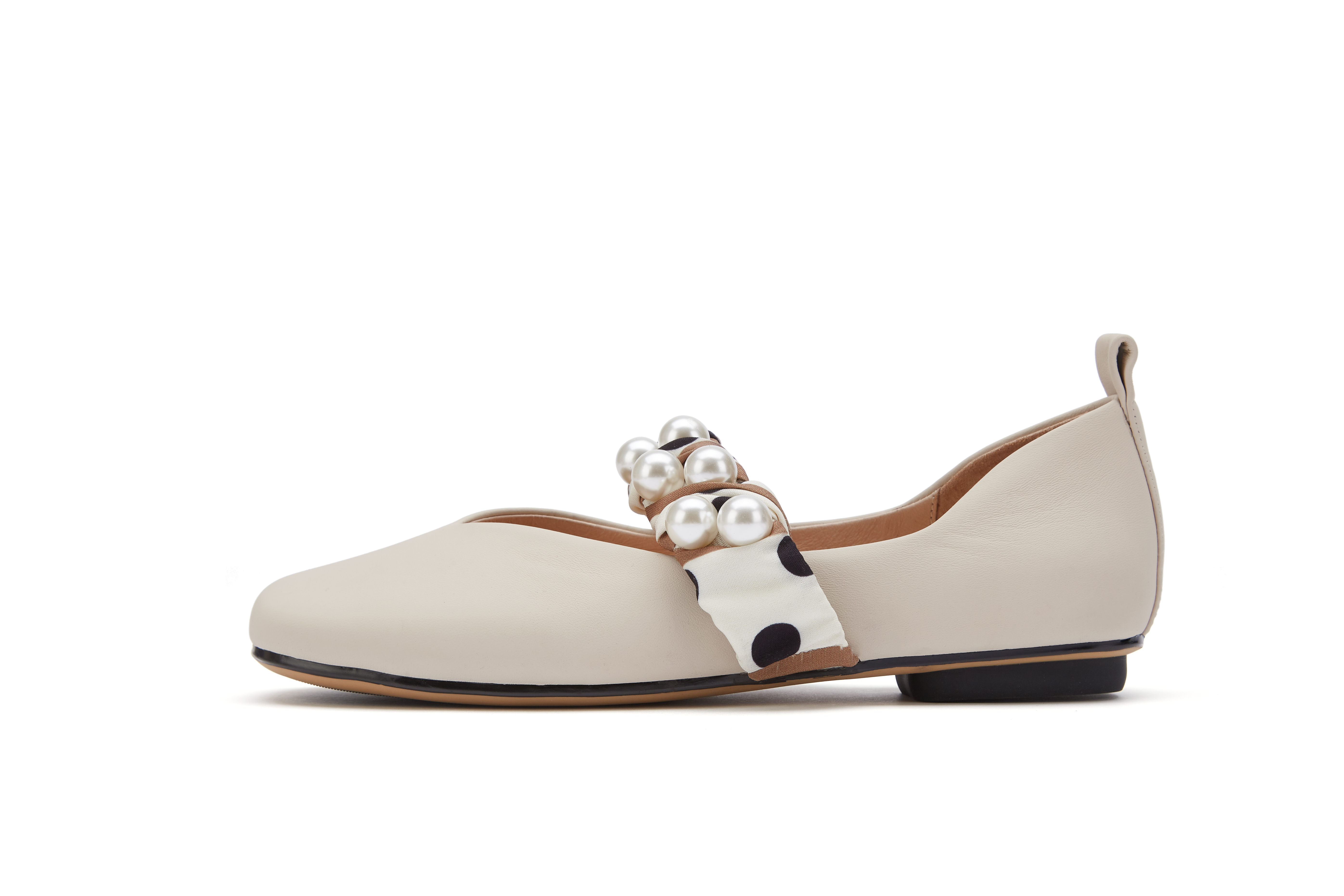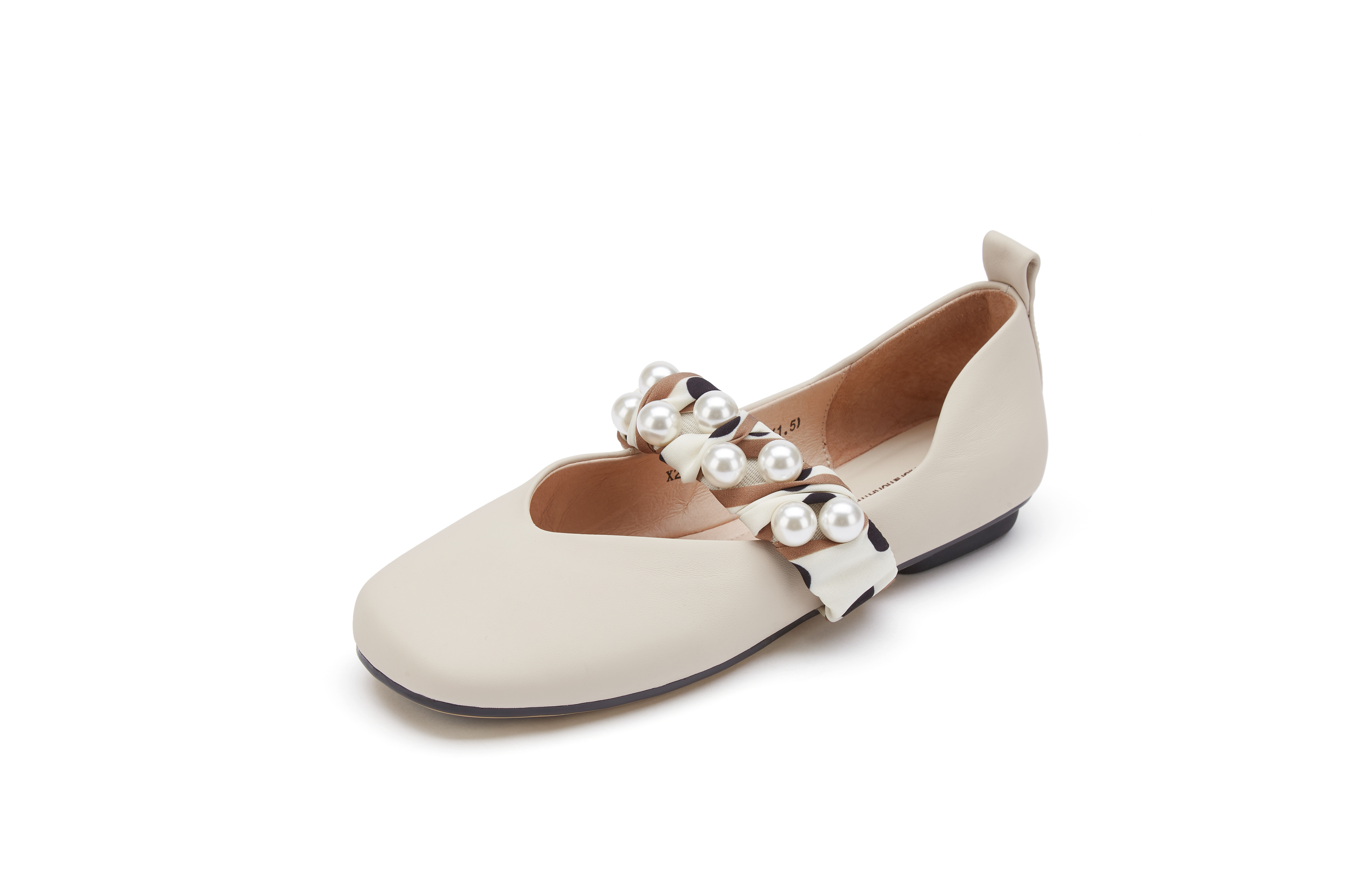 西村名物2021秋季新款丝带珍珠休闲平底奶奶鞋X21CE33201