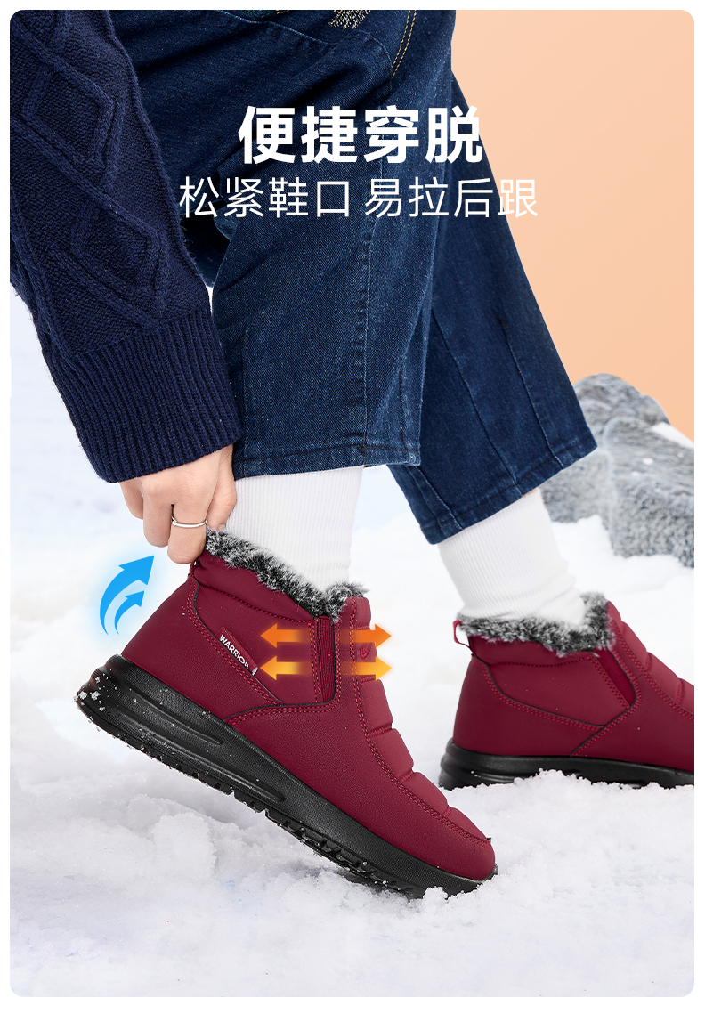 回力2024年冬款棉鞋女冬防水防滑老人鞋老北京布鞋加绒保暖妈妈鞋