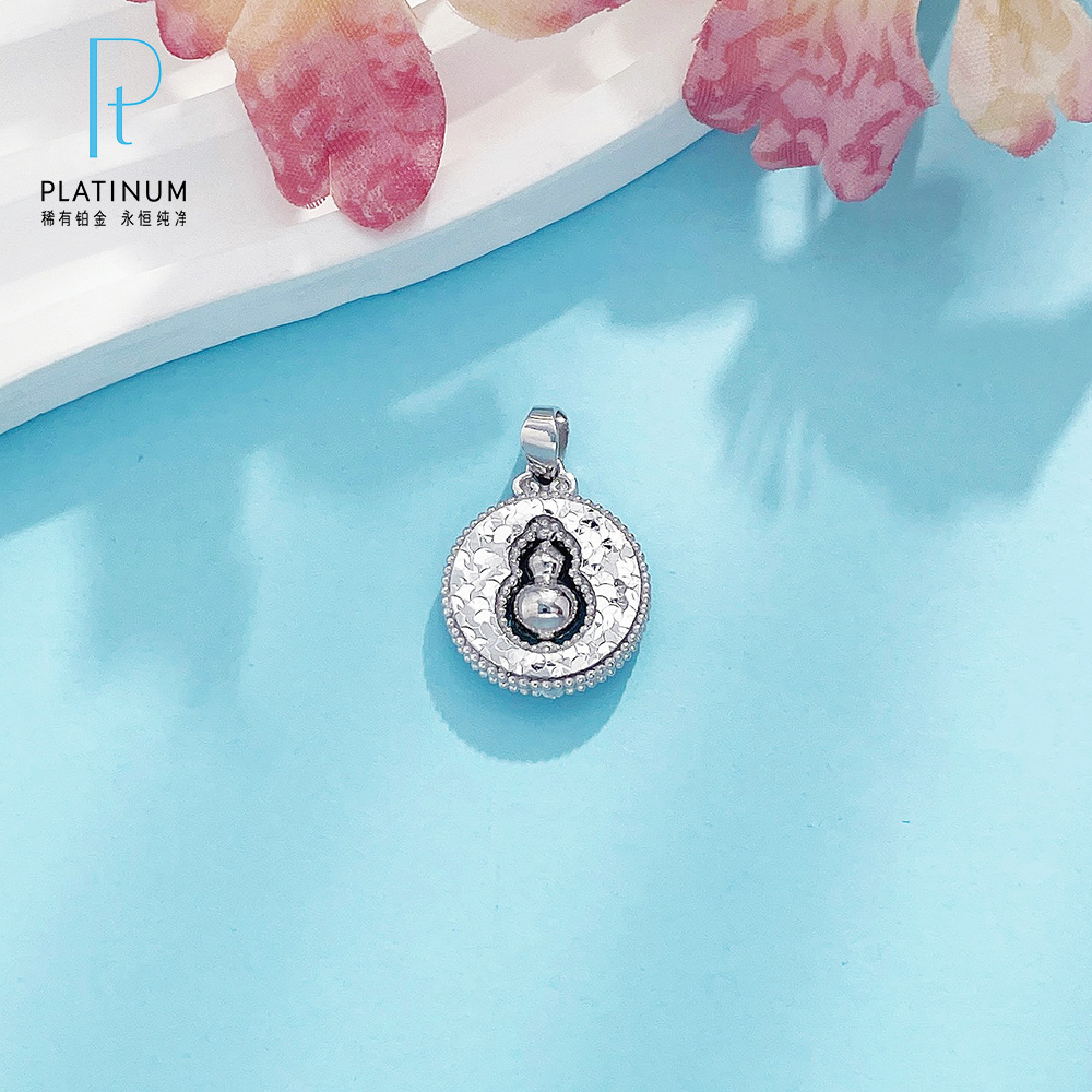【线上铂金馆】PT950 【国际铂金协会】铂金空心福禄圆满可转动葫芦双面碎碎冰圆盘吊坠(不含链)(BDZ00301)预售产品下单后不退款不退货不换货不补差价)
