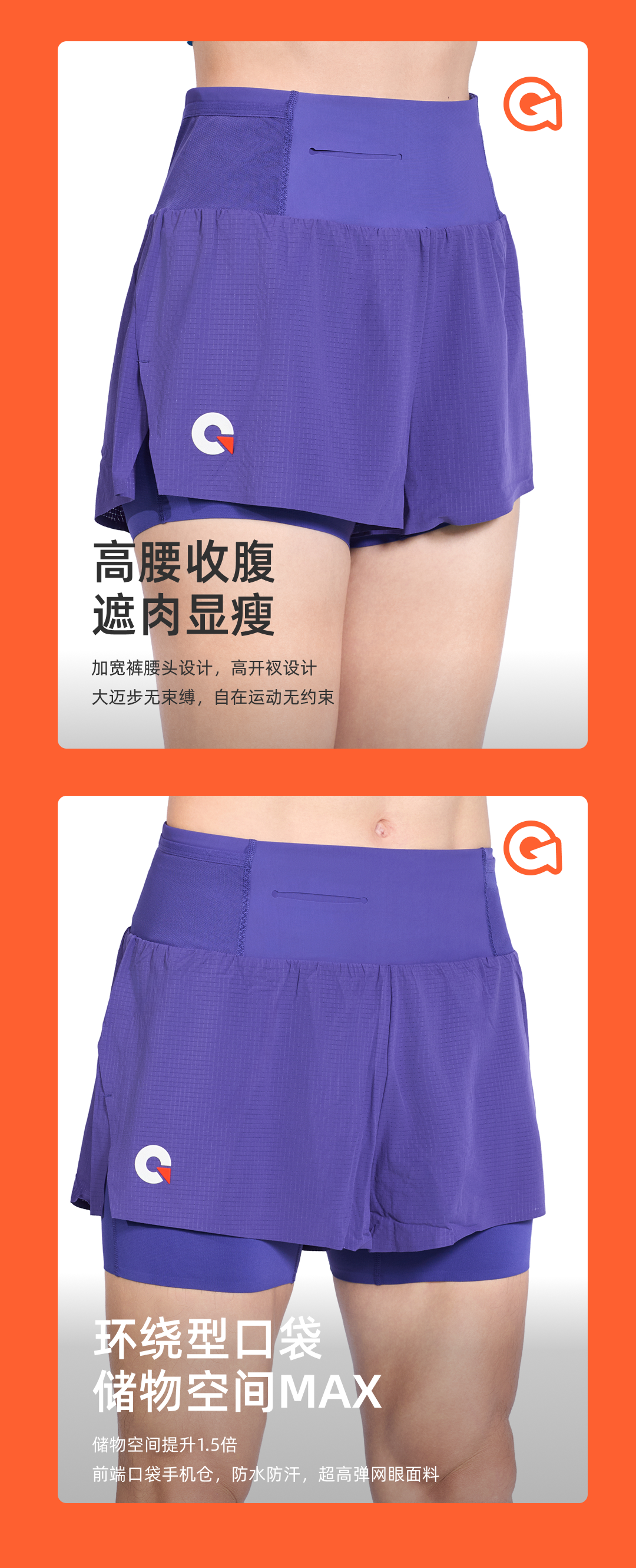 果凡【新款上市】高腰显瘦2.5分高弹力腰包式口袋款专业跑步短裤