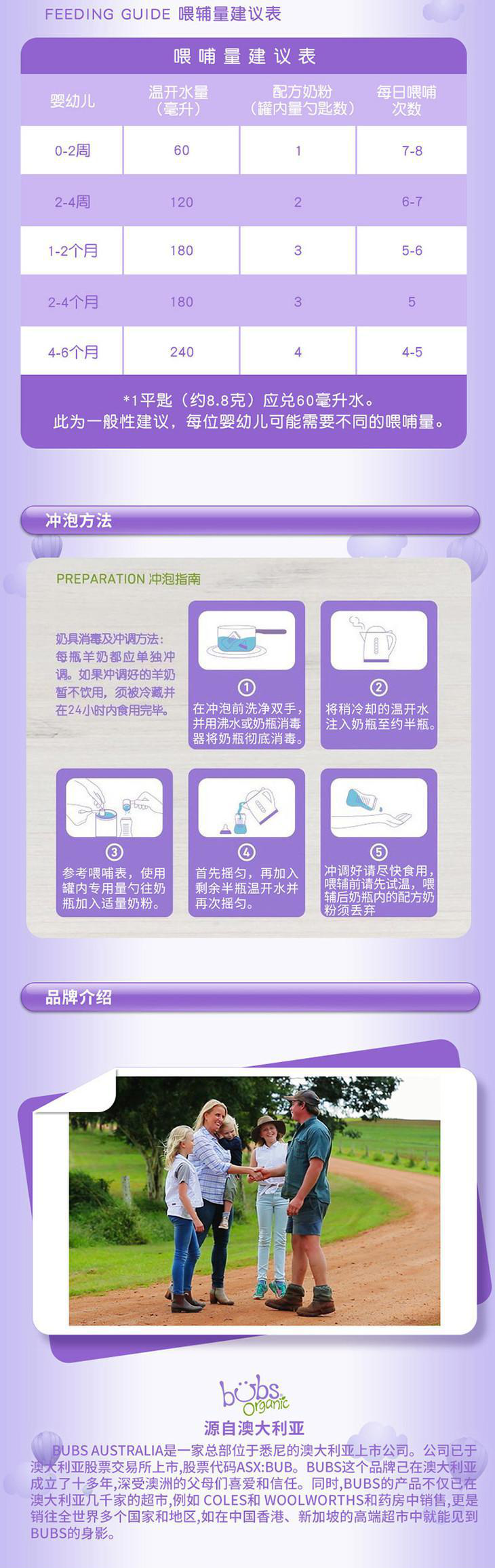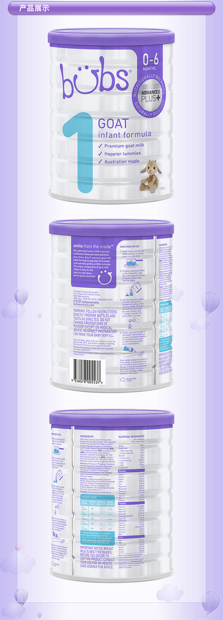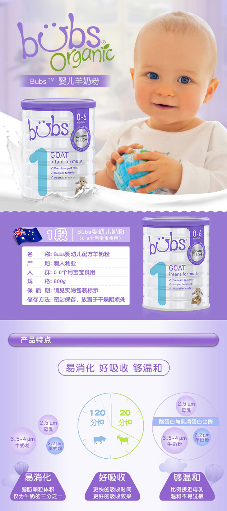 【BSC】澳洲bubs贝儿婴幼儿配方羊奶粉1段800g