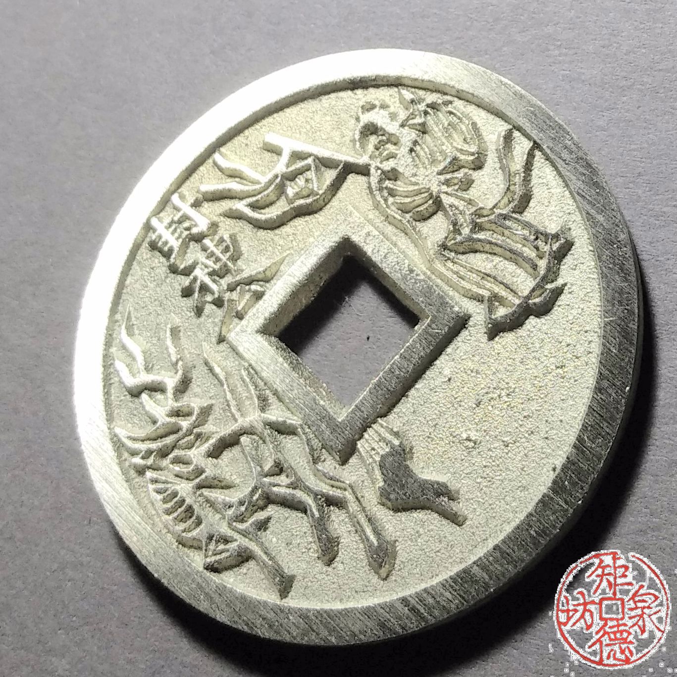 为了尽量还原古代钱币的文字神韵与时代铸造特征,每一枚都进行手工修刀、打磨。会有打磨痕迹、刻刀痕迹,铸造气孔或者微小沙眼,这正是手工与机器制作的区别,并非瑕疵。