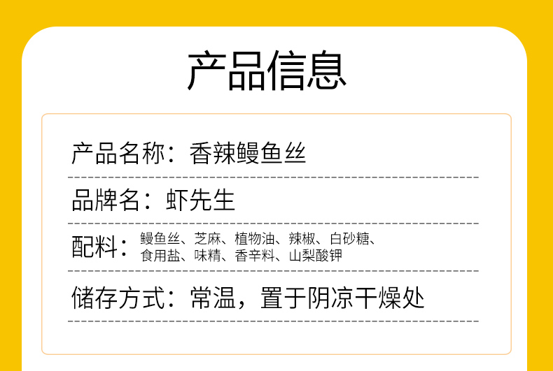 虾先生先生的鳗鱼丝(香辣即食鱼干)100g