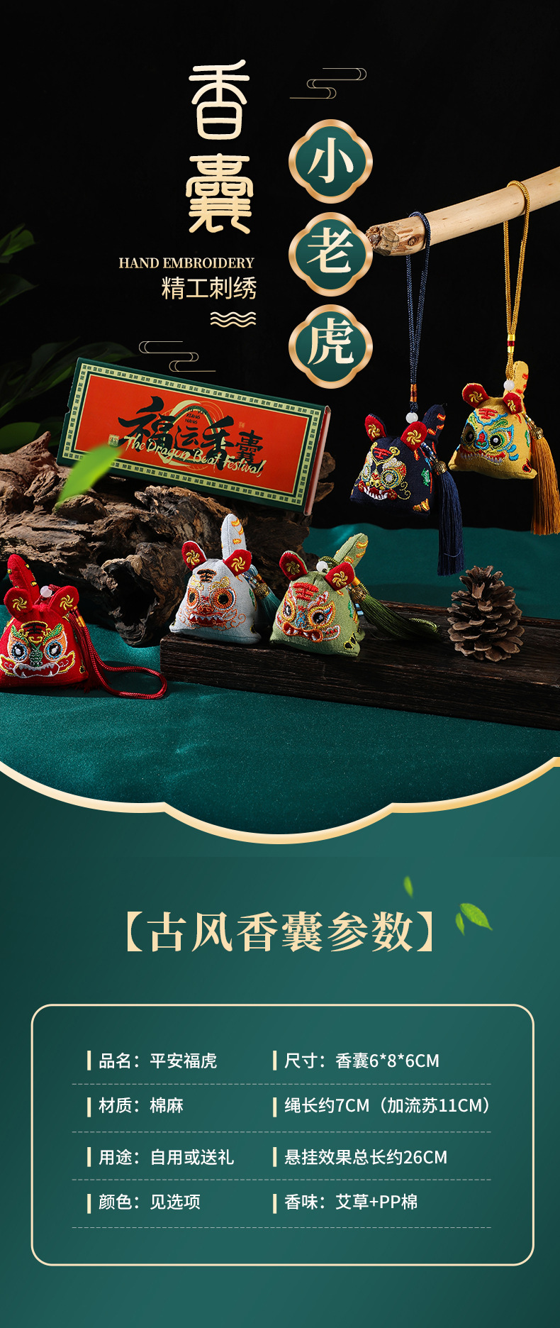 【端午节祈福香囊】立体刺绣老虎香包 驱蚊艾草香囊挂件 国潮老虎福袋香包