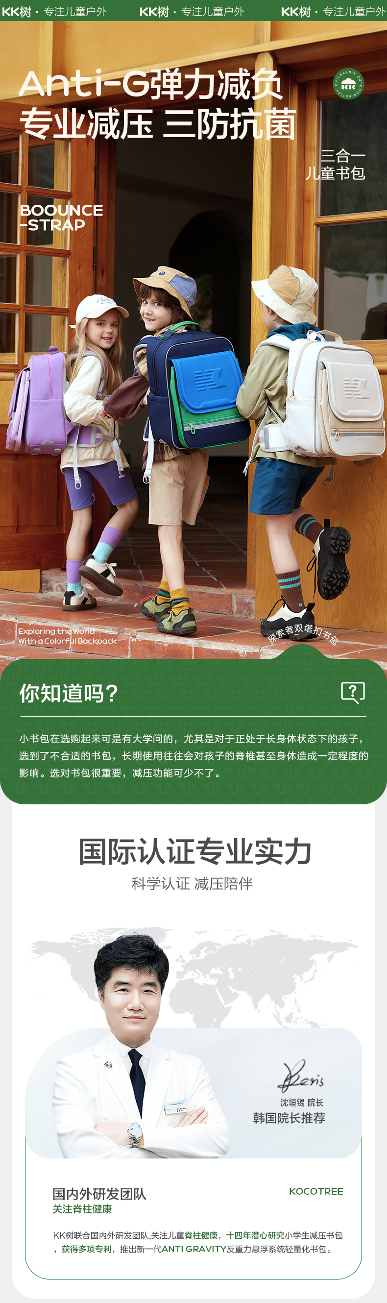 KK树儿童书包女小学生背包护脊减负新款男童双肩包一年级二三到六探知世界双肩包