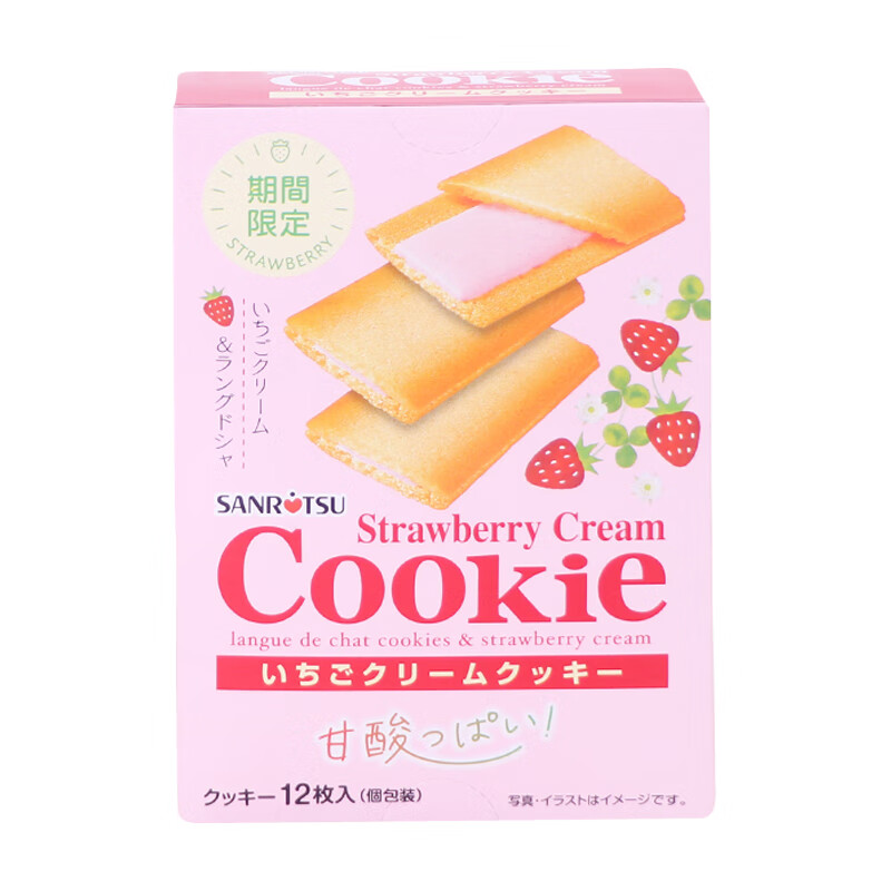 日本三立草莓味夹心薄酥饼干84g/050280 口感丰富一盒12枚