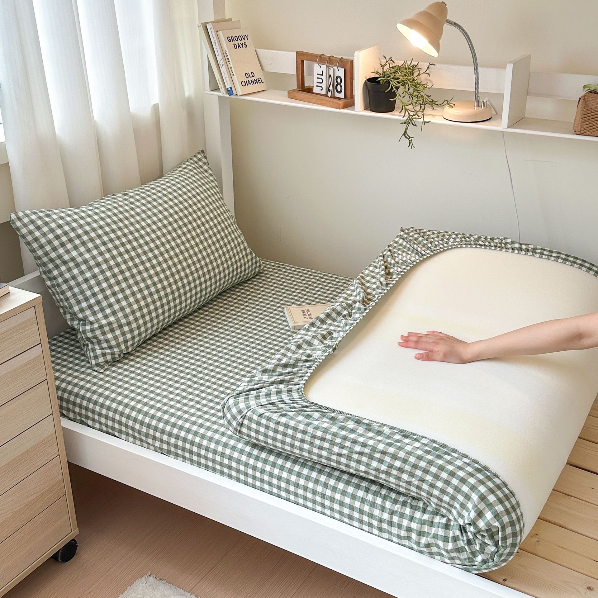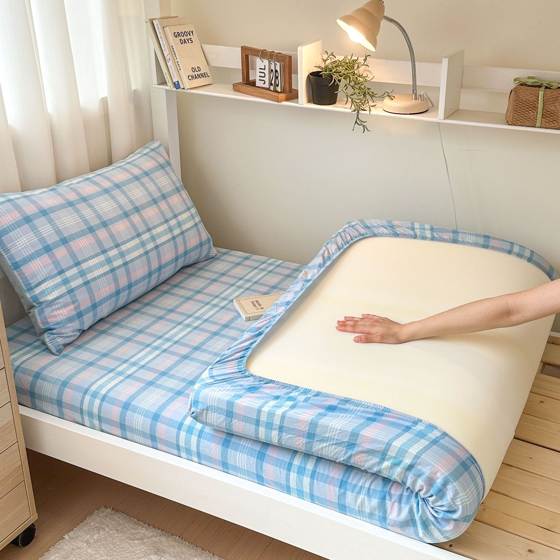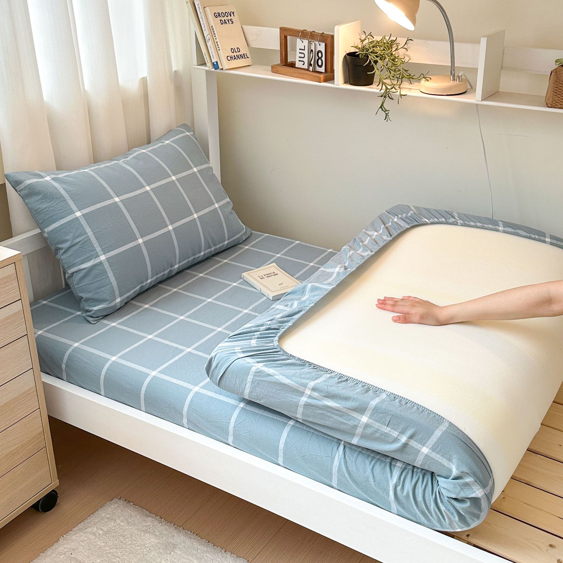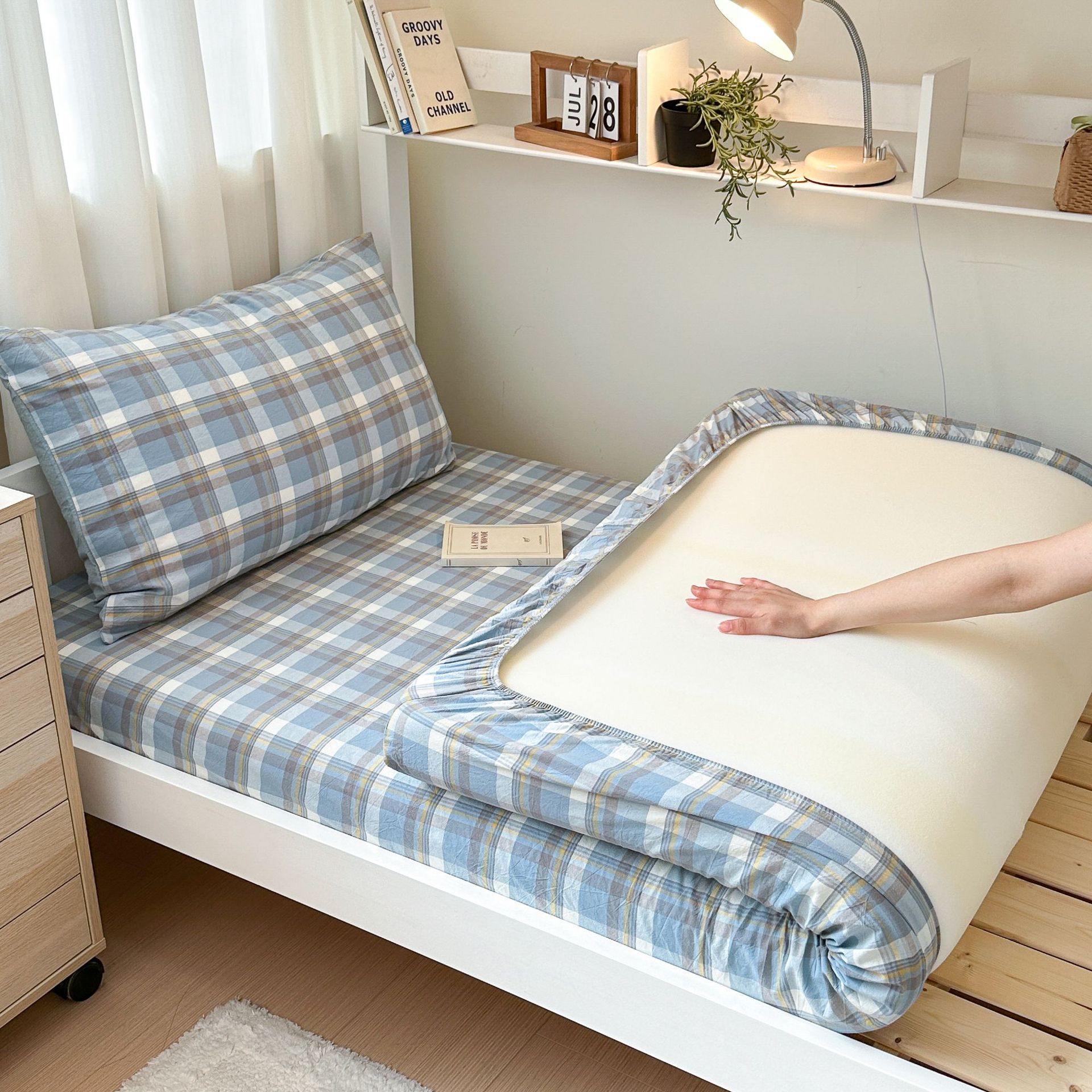 【单品床笠】水洗棉格纹床笠床笠纯色全棉床单简约