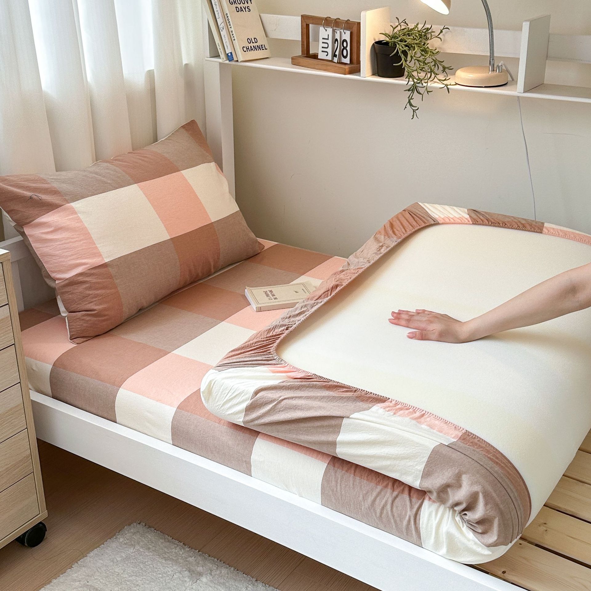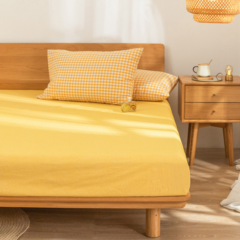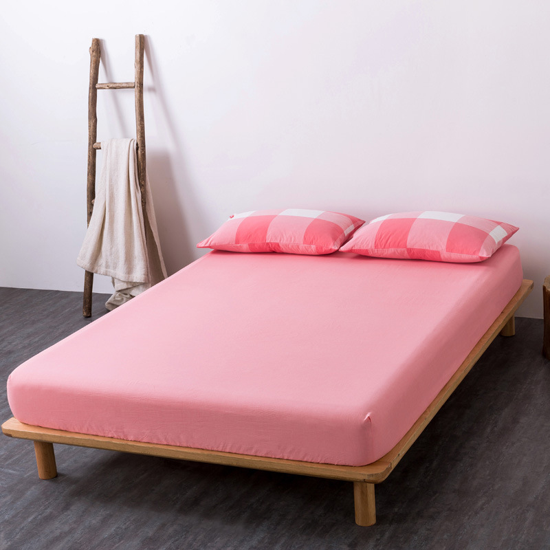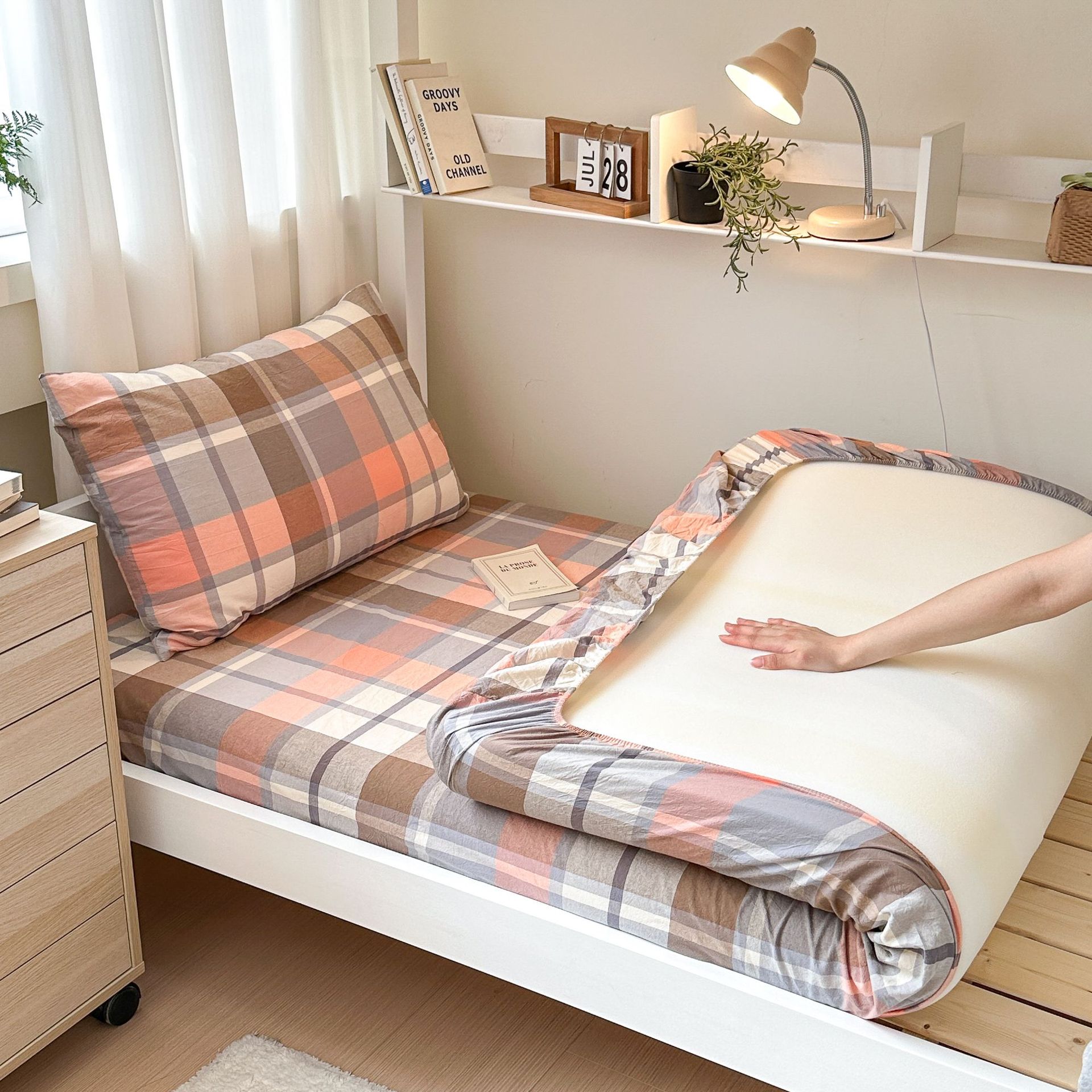 【单品床笠】水洗棉格纹床笠床笠纯色全棉床单简约