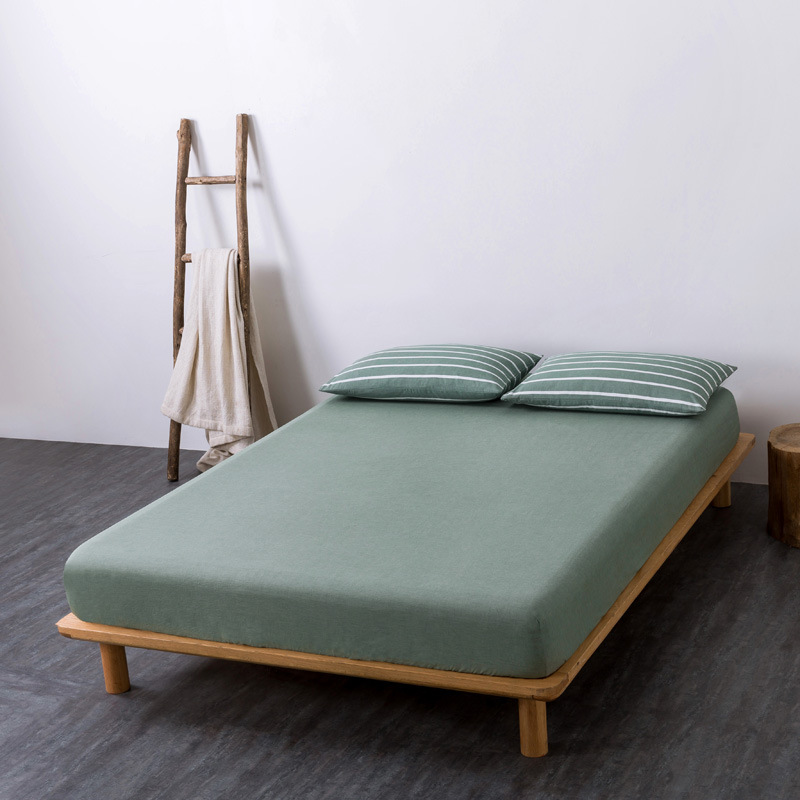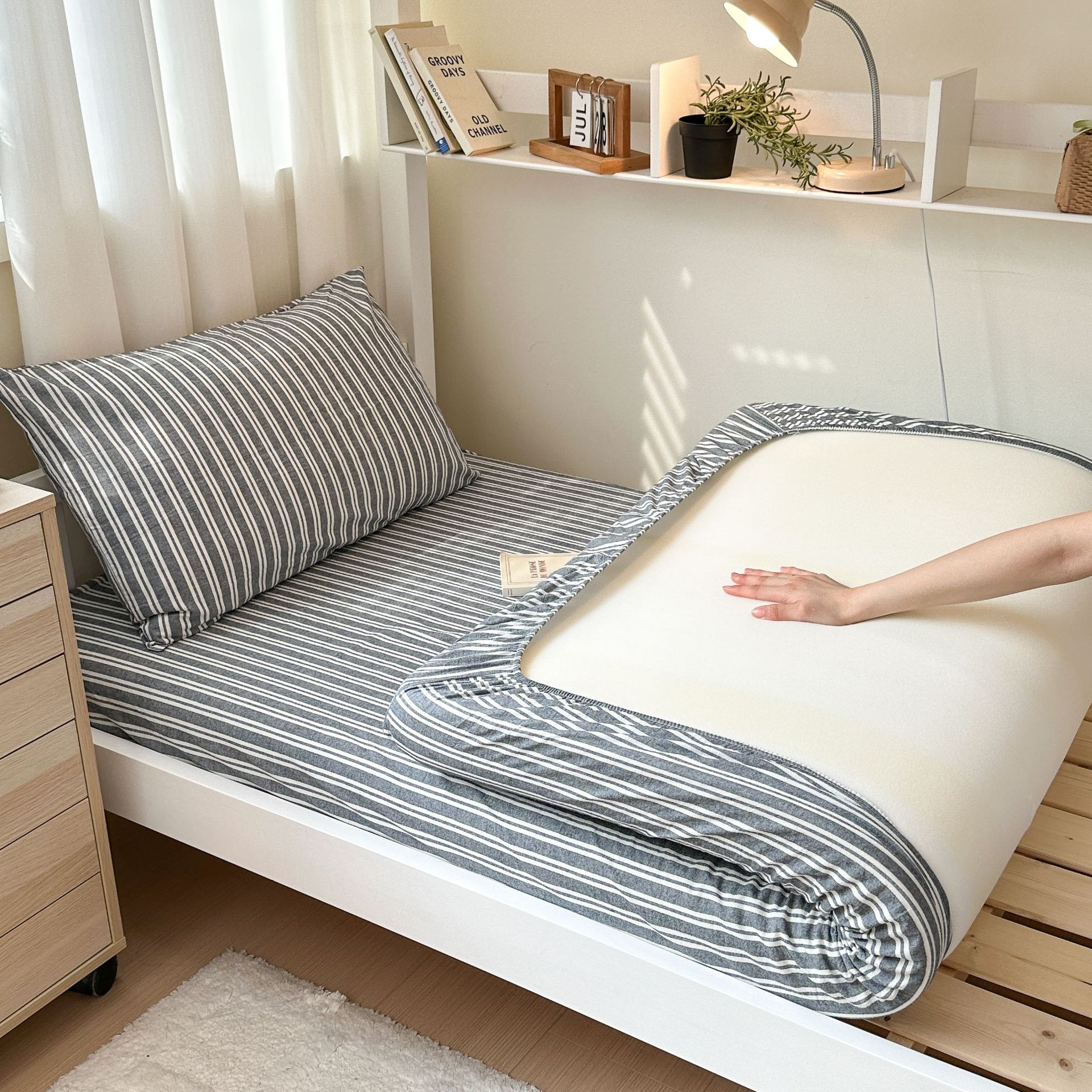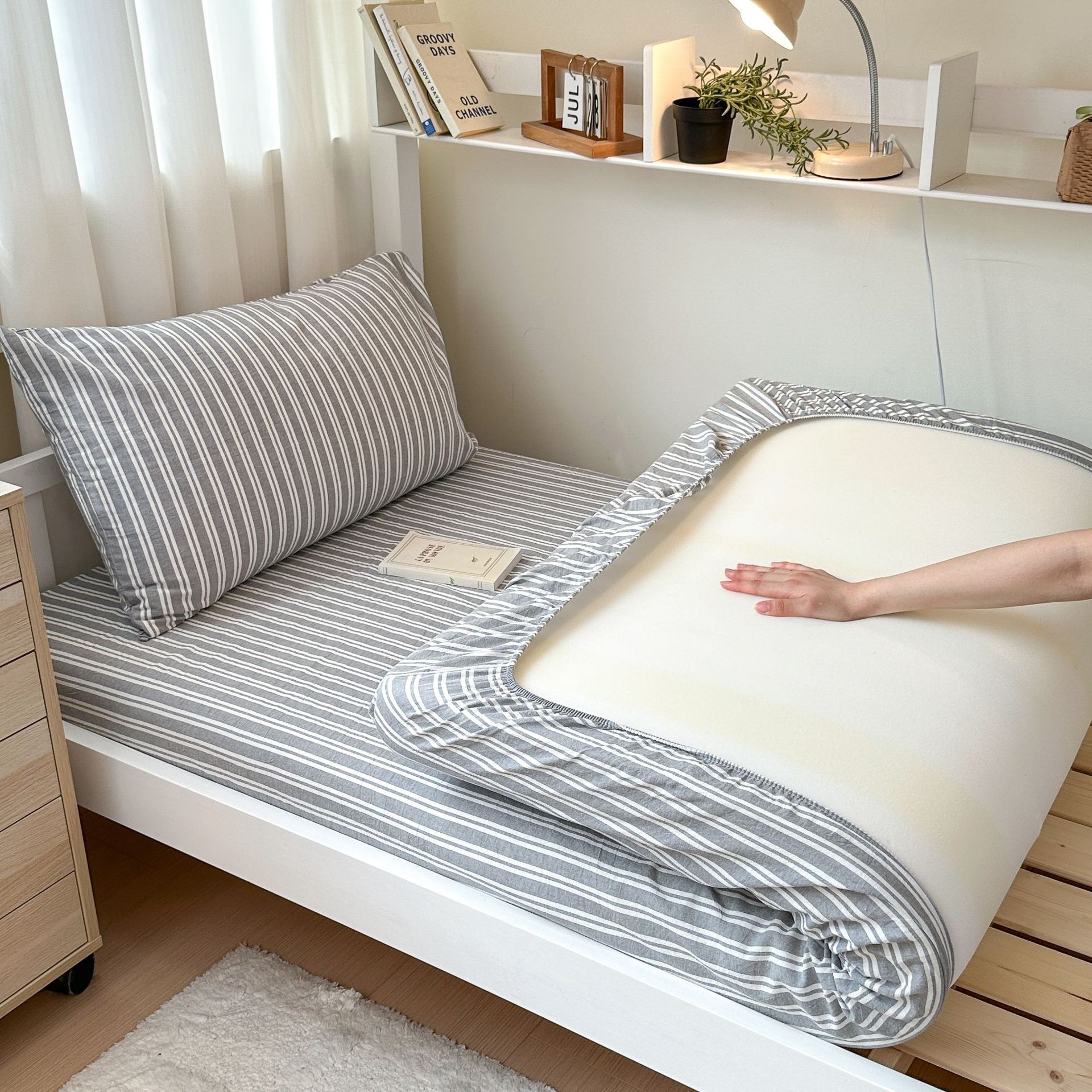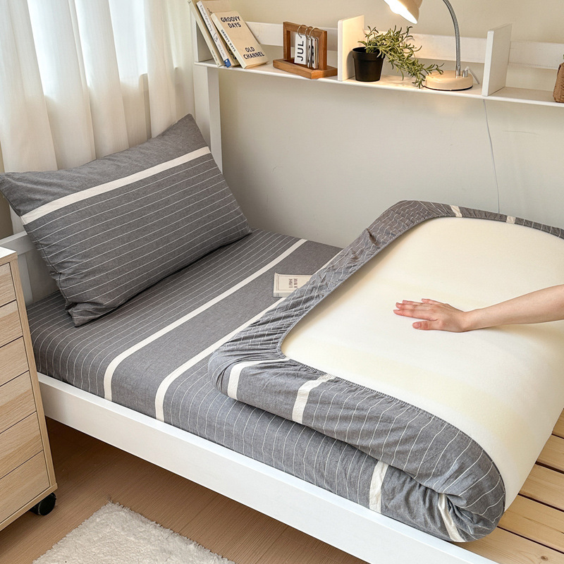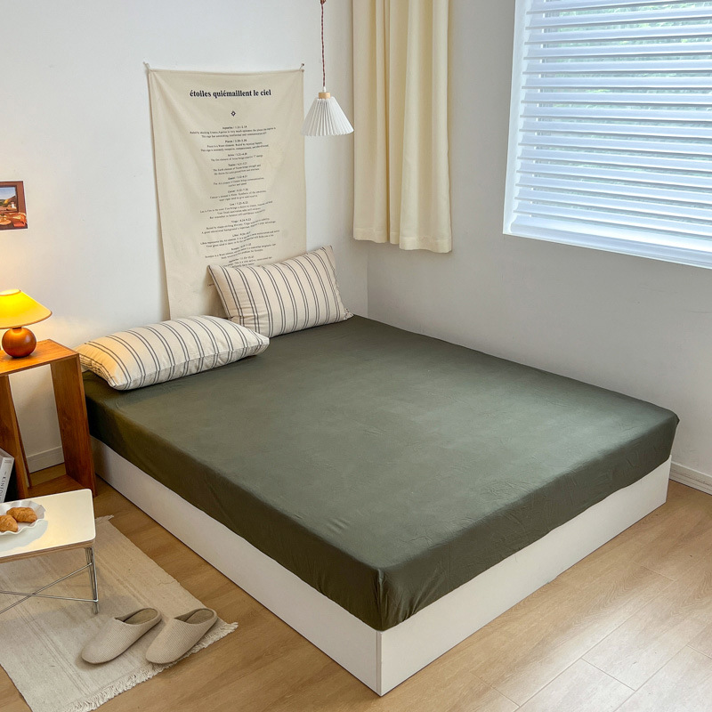 【单品床笠】水洗棉格纹床笠床笠纯色全棉床单简约