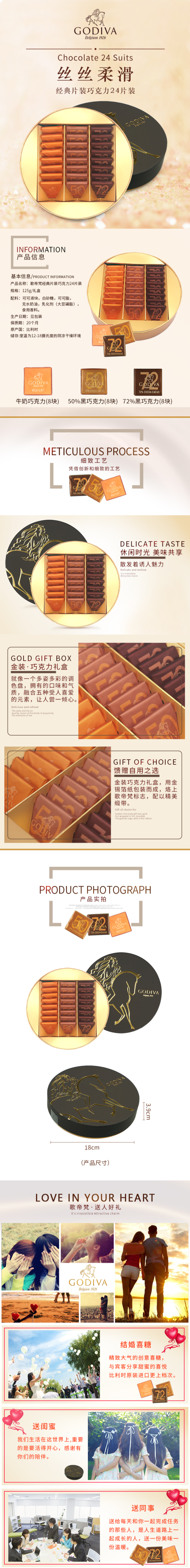 【女神节】歌帝梵 318型经典片装巧克力礼盒24片装 125g