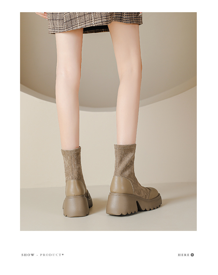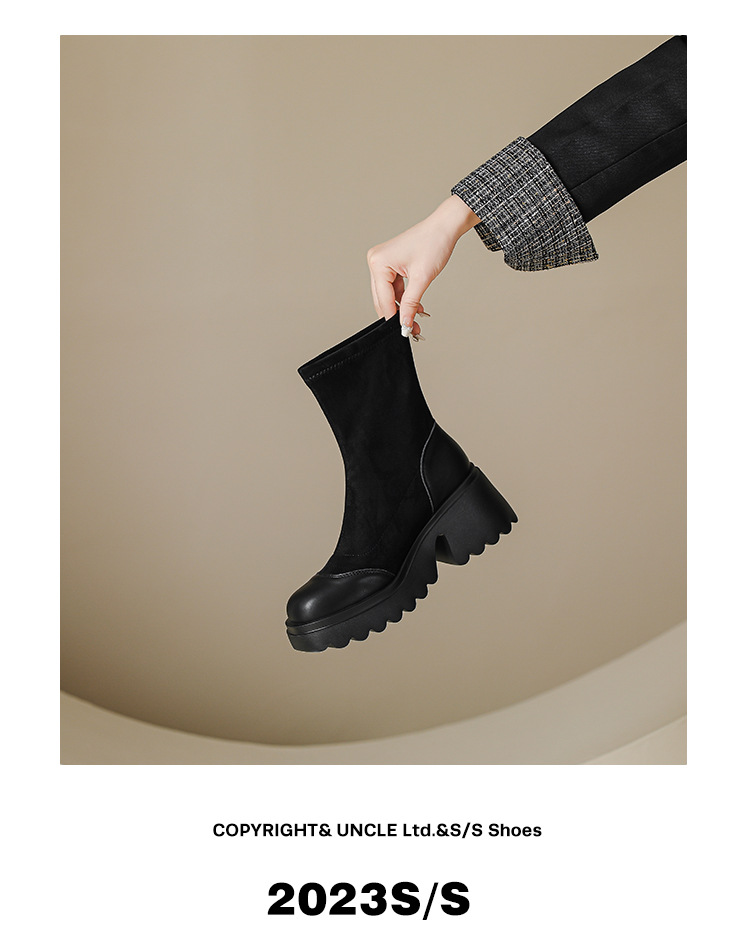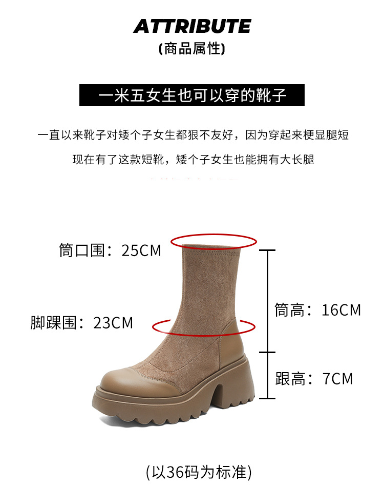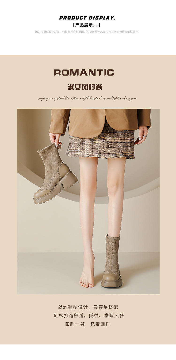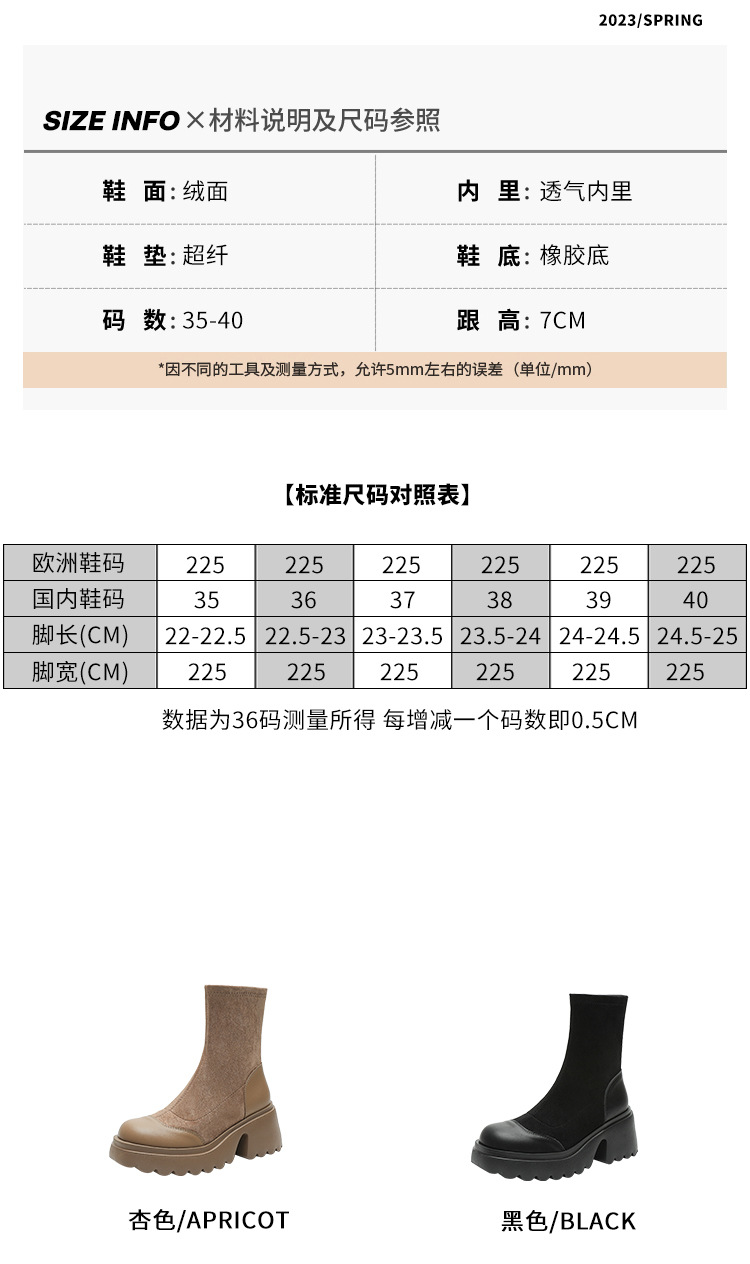 丝滑绒面马丁靴短靴女2023秋冬新款粗跟弹力靴7cm高跟显瘦靴子女