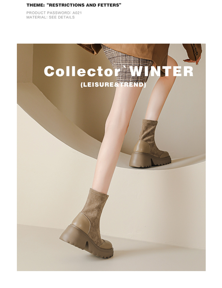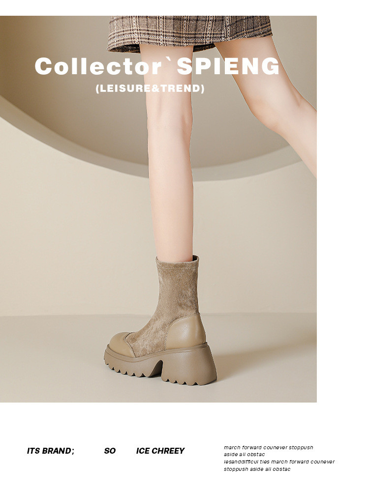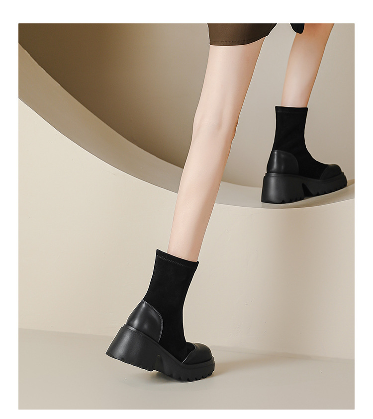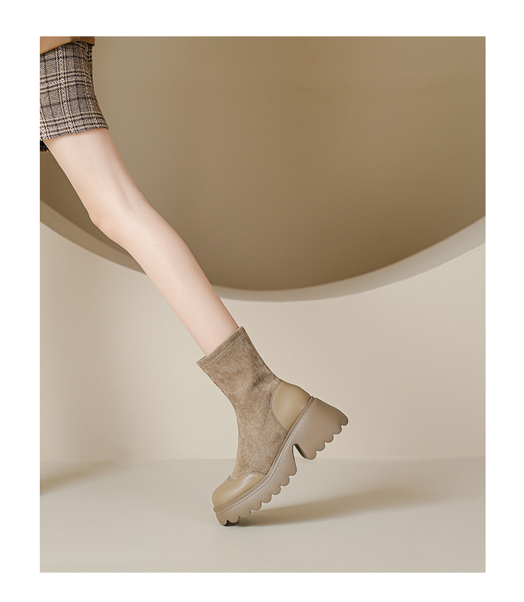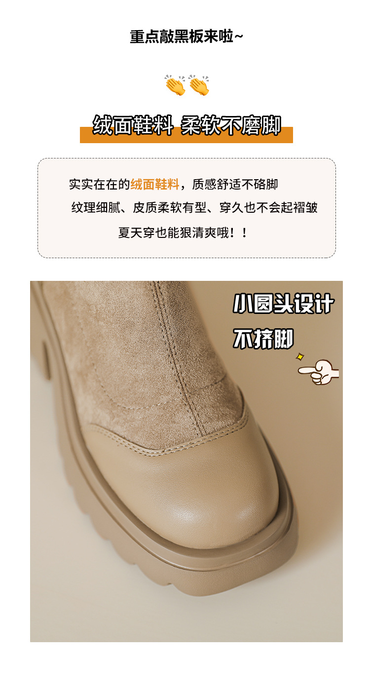 丝滑绒面马丁靴短靴女2023秋冬新款粗跟弹力靴7cm高跟显瘦靴子女