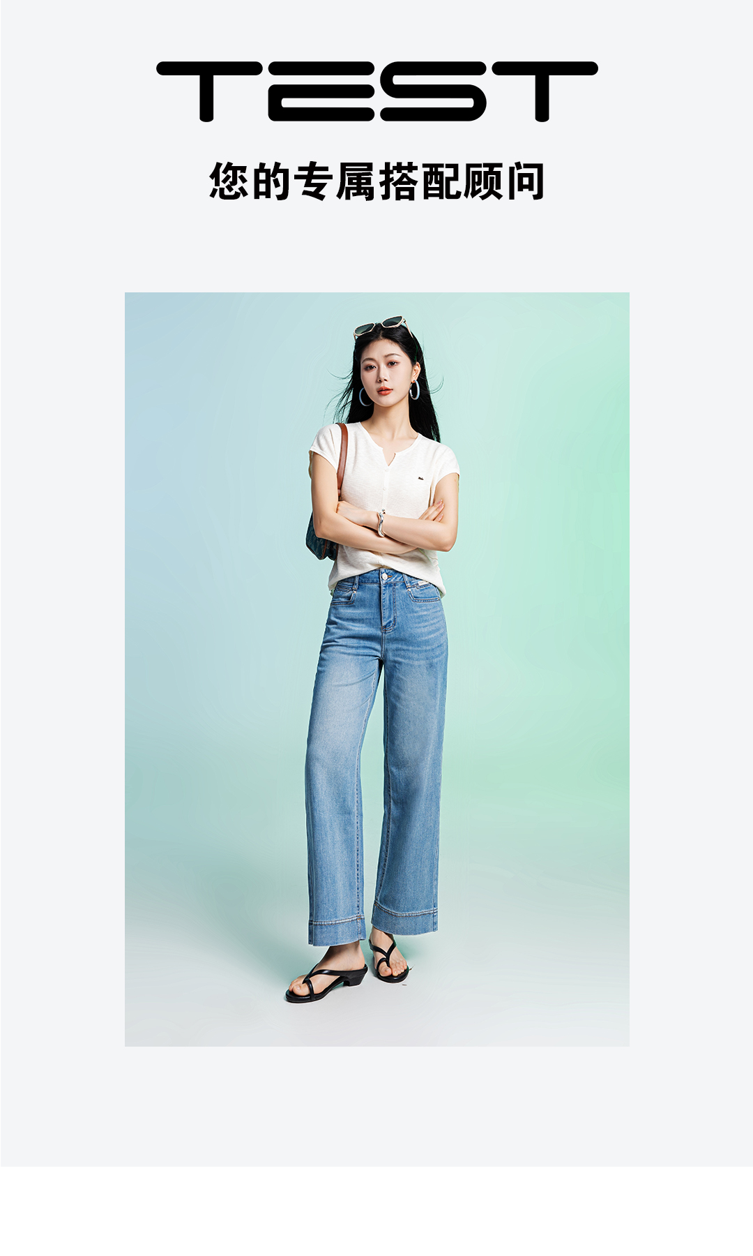夏上新韩系清爽松弛感显瘦浅蓝水洗阔腿牛仔裤3262032 商品图0