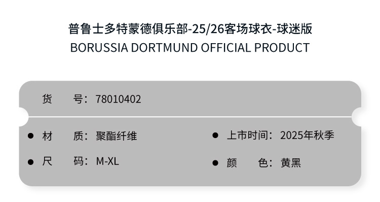 【官网同款】多特蒙德足球俱乐部|25-26赛季客场球衣-球迷版