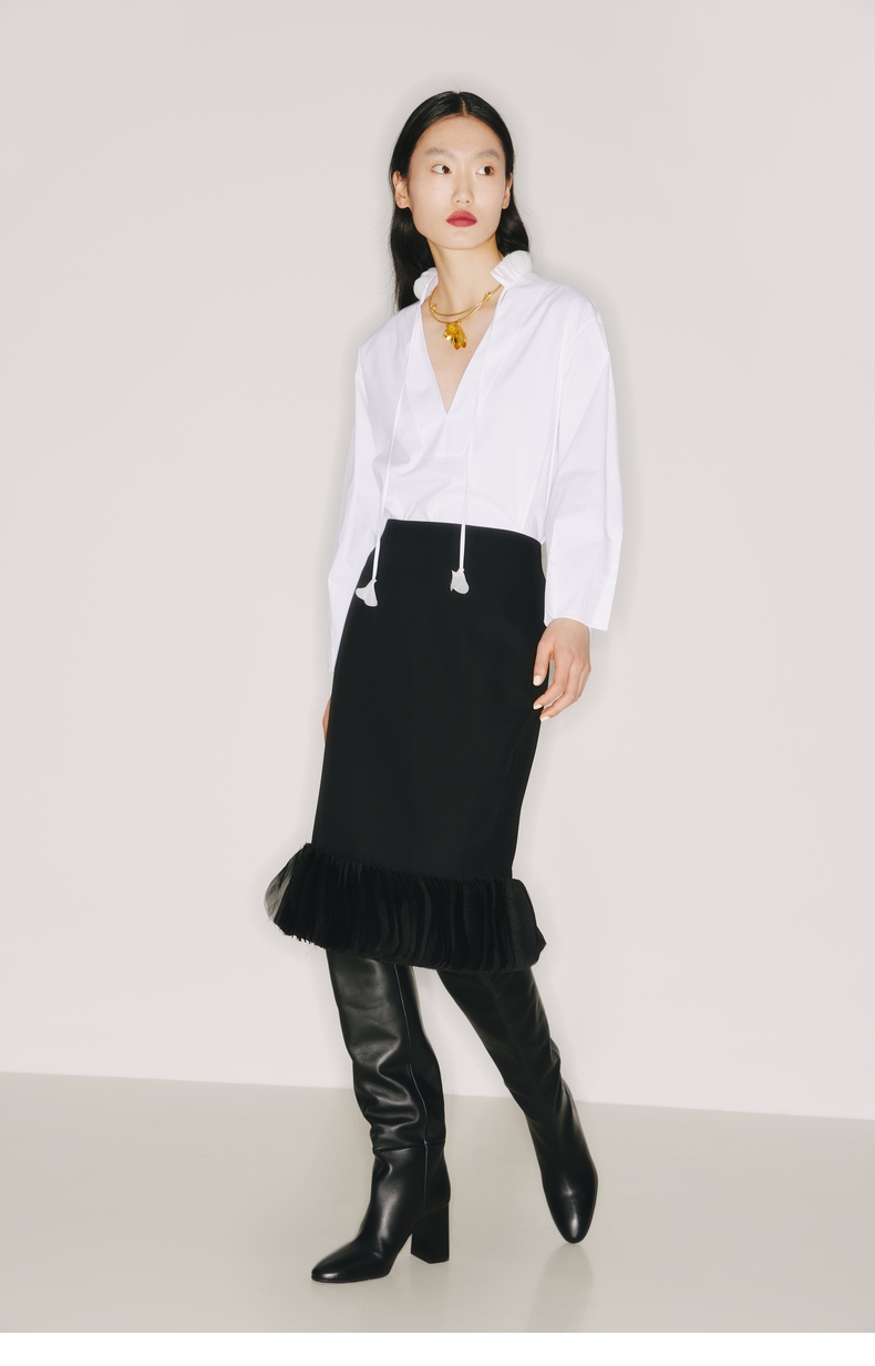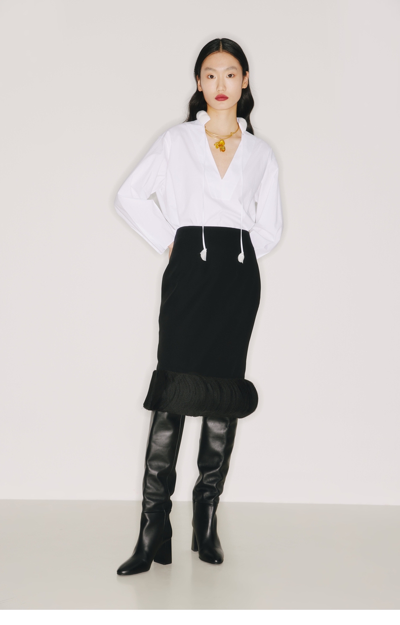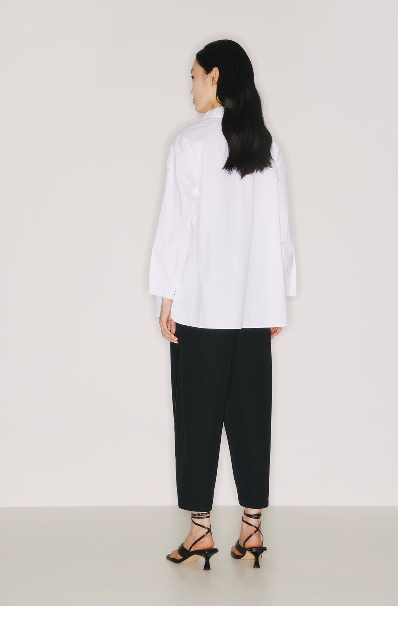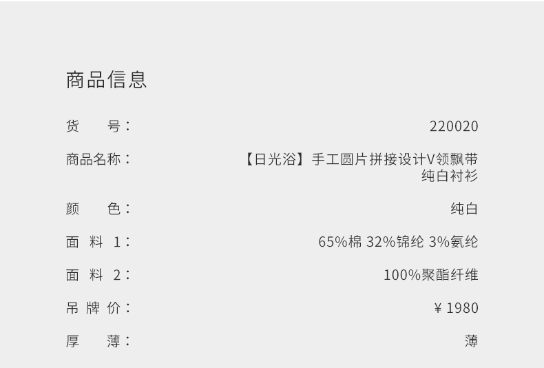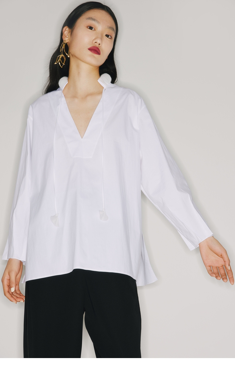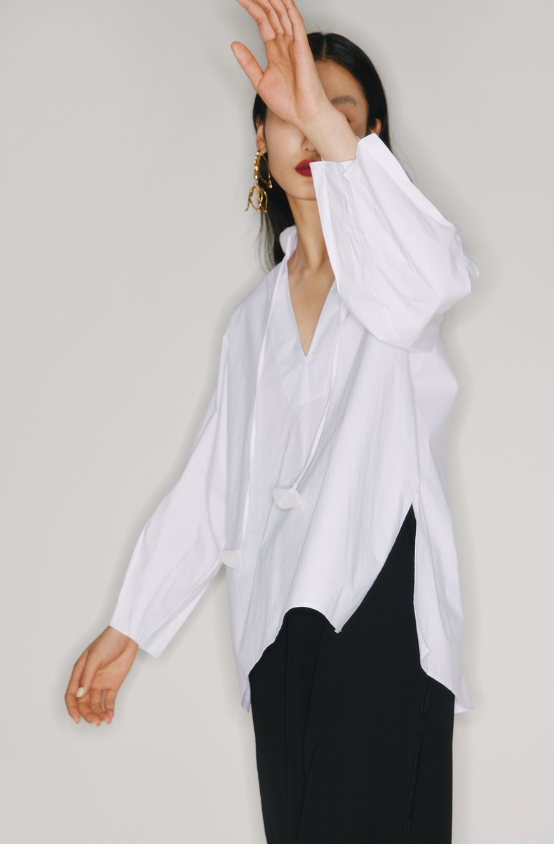 【日光浴】手工圆片拼接设计V领飘带纯白衬衫/220020