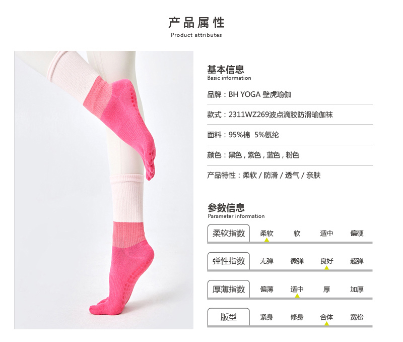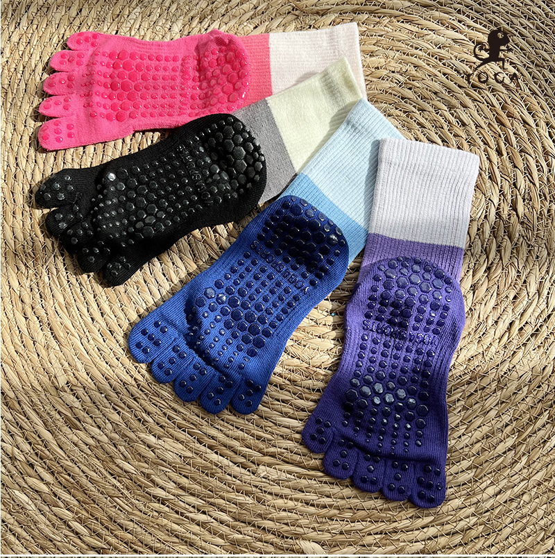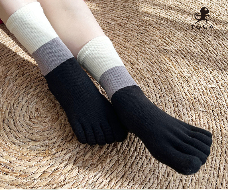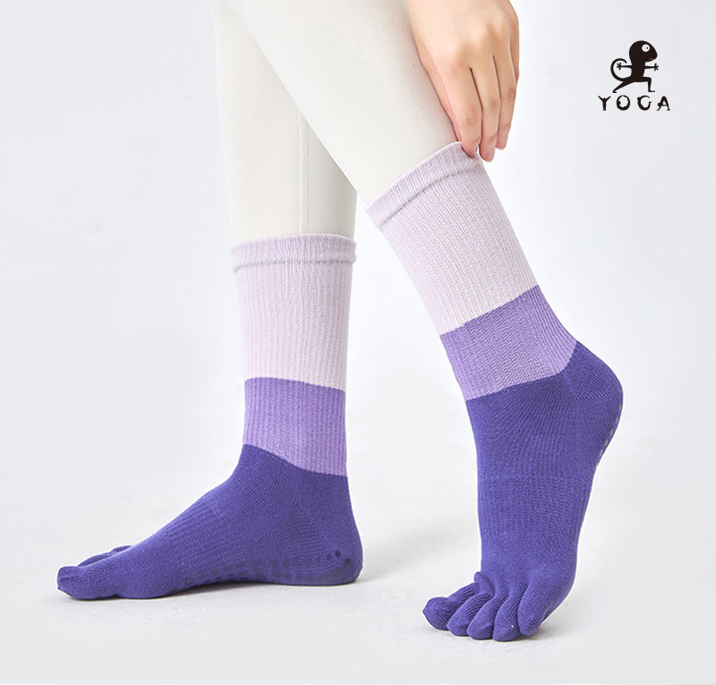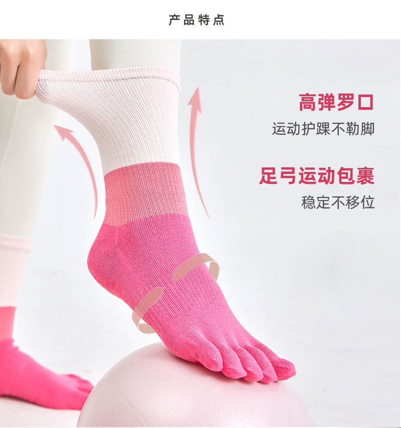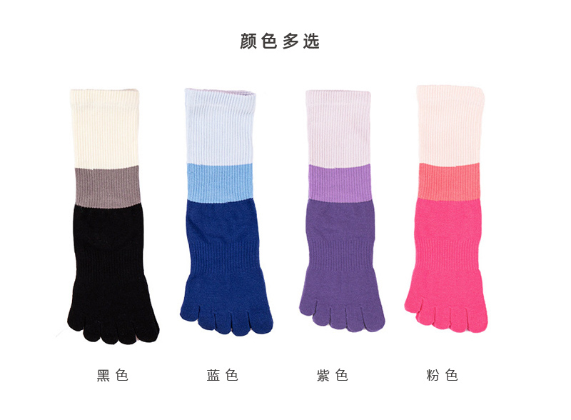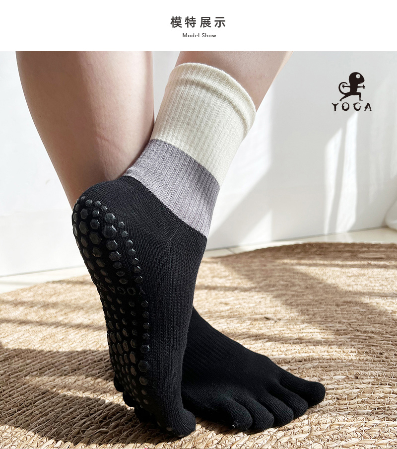 壁虎瑜伽【2310WZ269】防滑中筒拼色五趾瑜伽袜【5天发货】