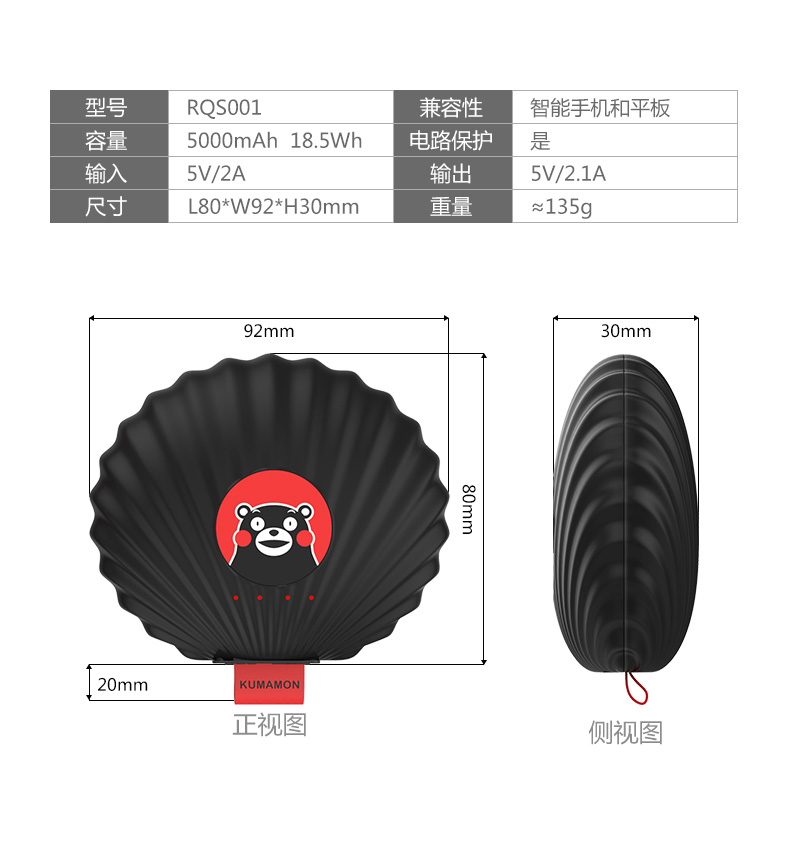 酷MA萌 Kumamon -贝壳移动电源套装