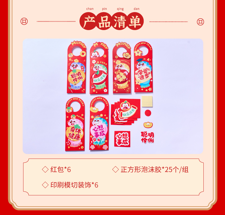 新年春节元旦蛇年门挂红包手工diy儿童制作材料包幼儿园装饰2025