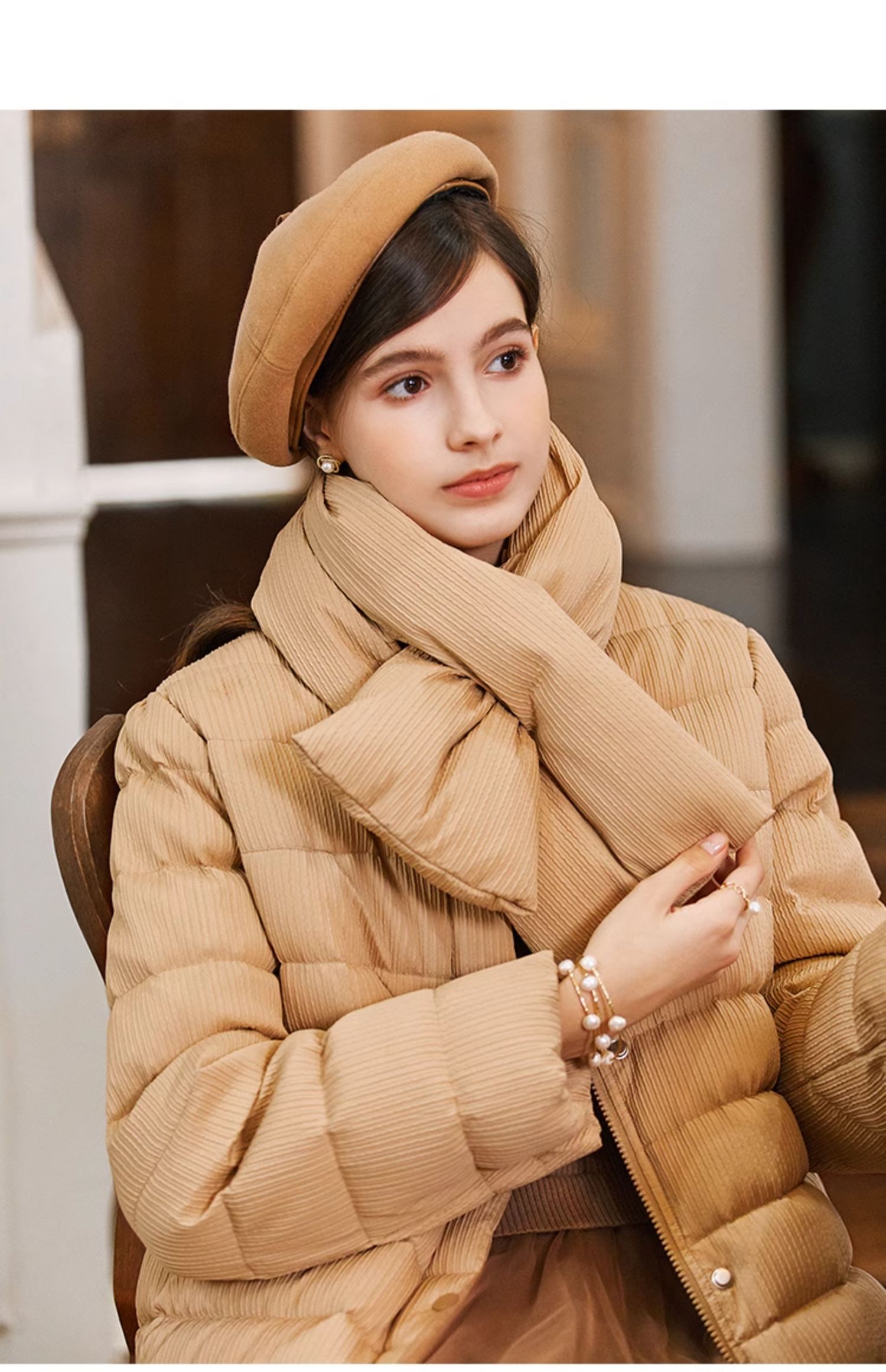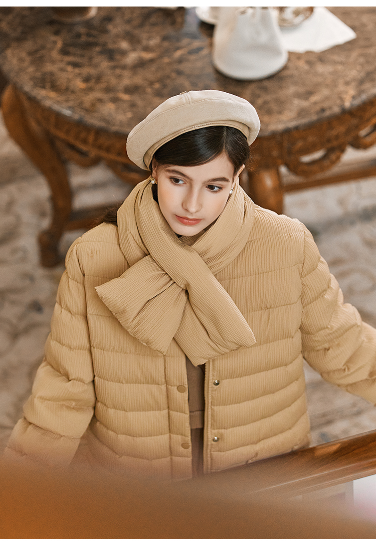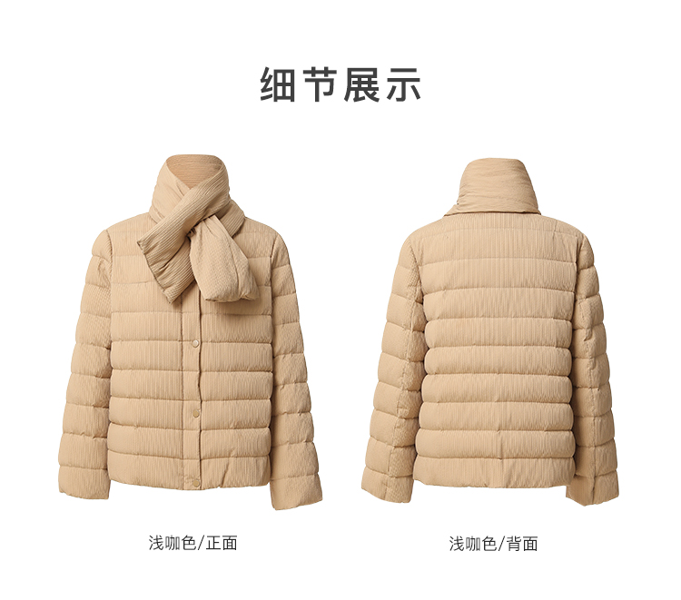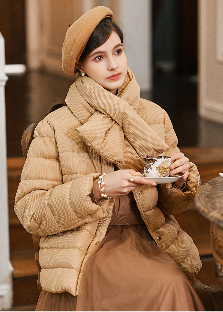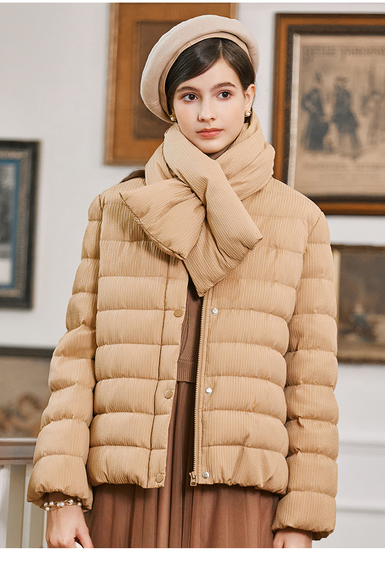 Famecoco短款泡芙羽绒服女加厚附羽绒围巾FAB8AJ041