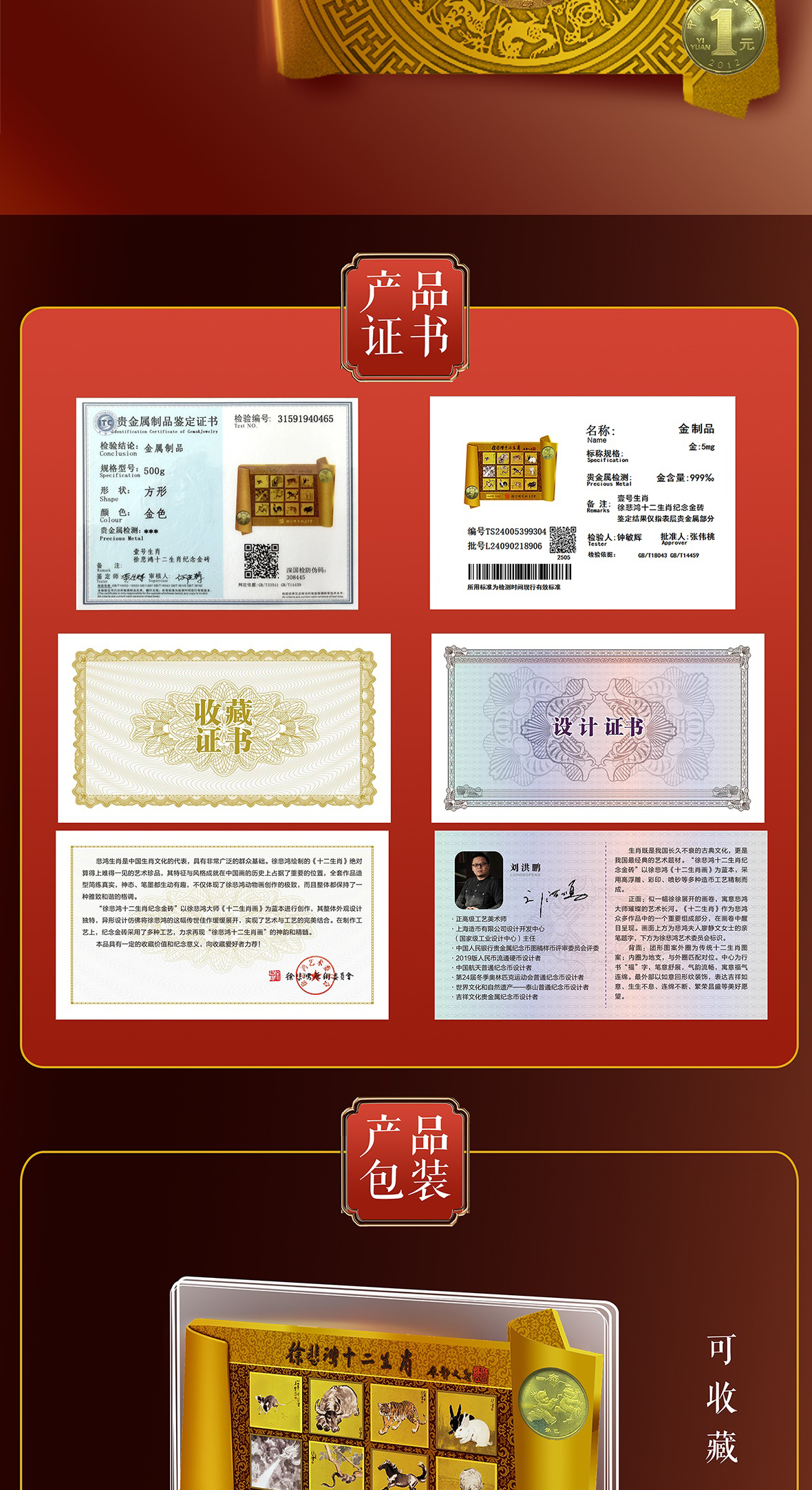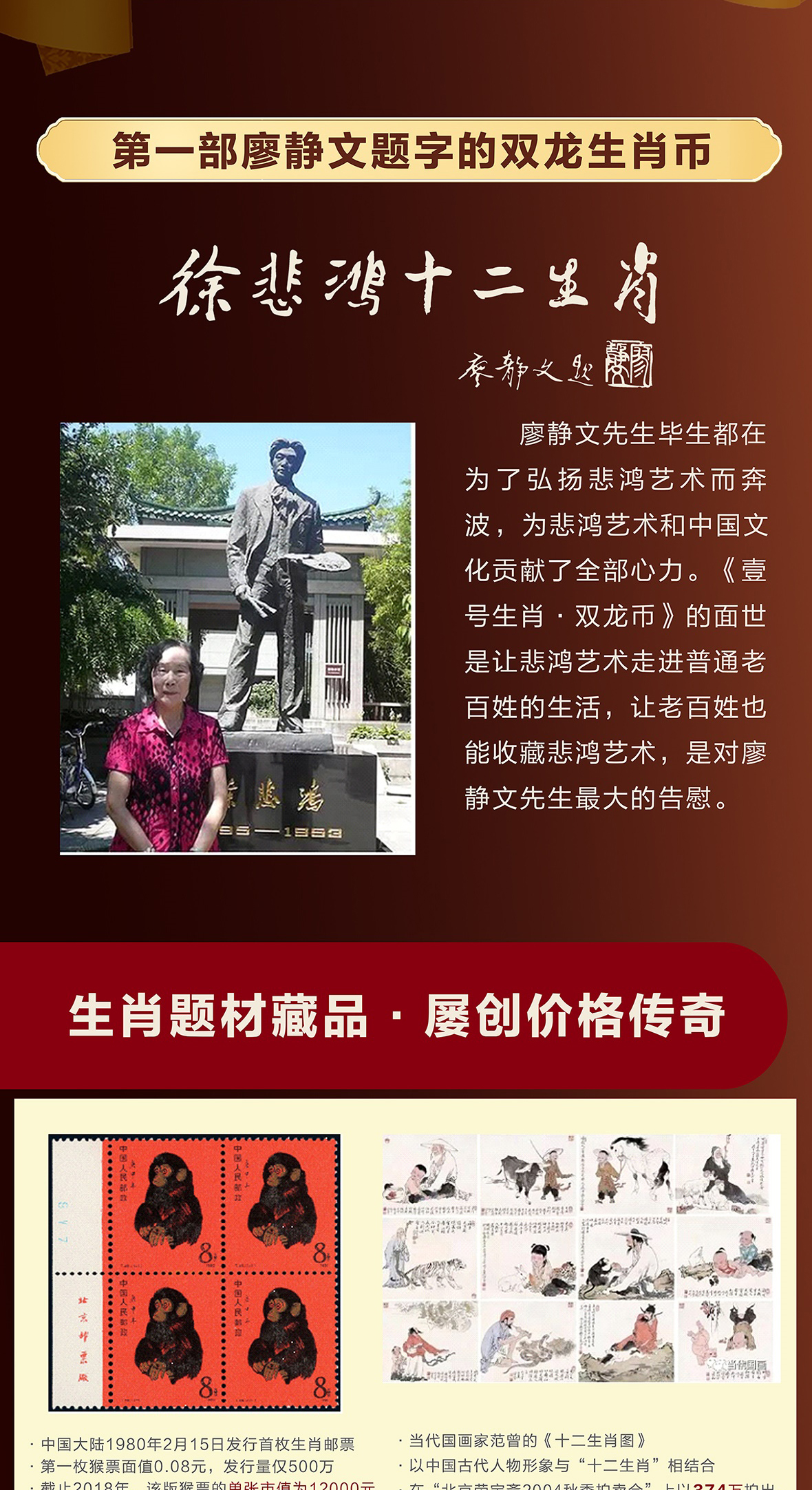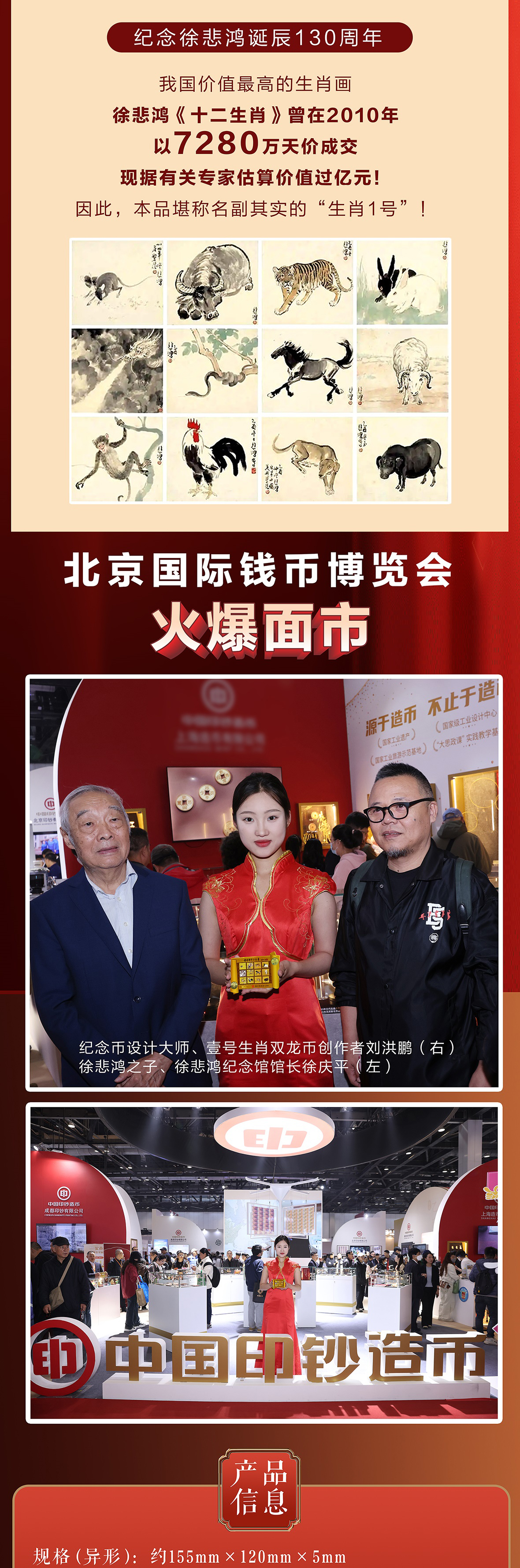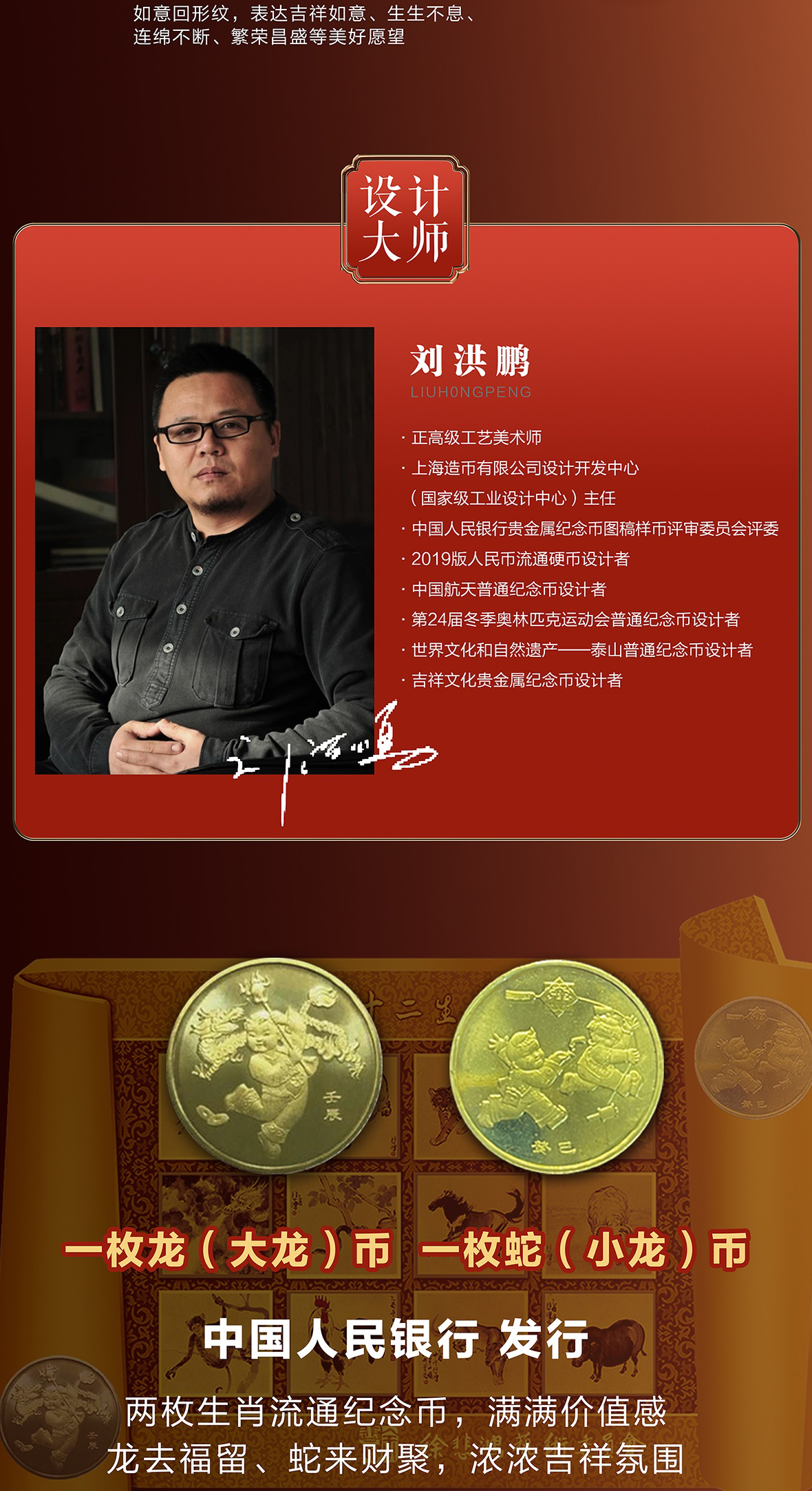 徐悲鸿《生肖壹号》双龙币 足金999 5mg 龙去福留、蛇来聚财 限量赠送(十二生肖纪念券)