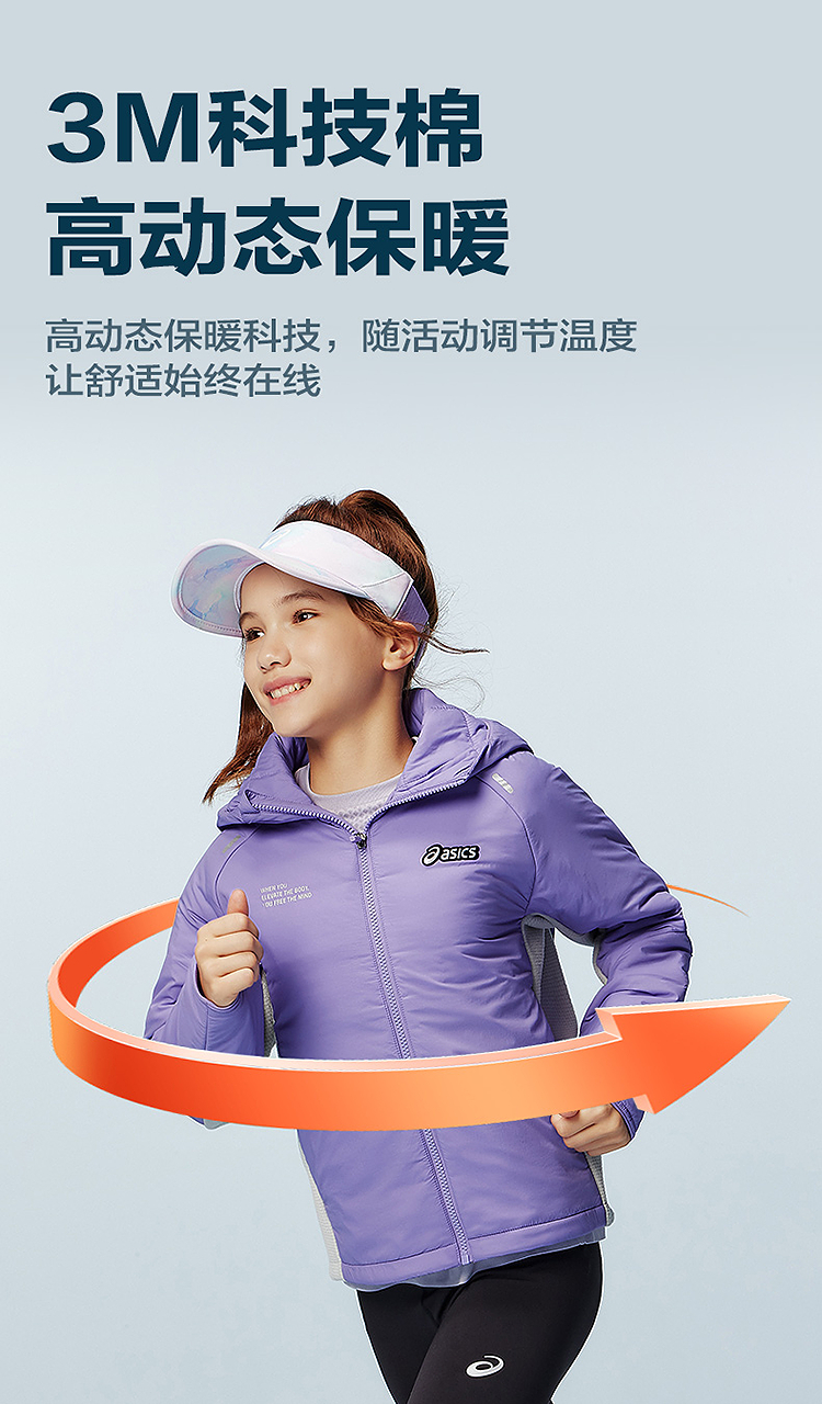 ASICS/亚瑟士童装25年冬季儿童百搭运动棉服时尚百搭舒适保暖外套