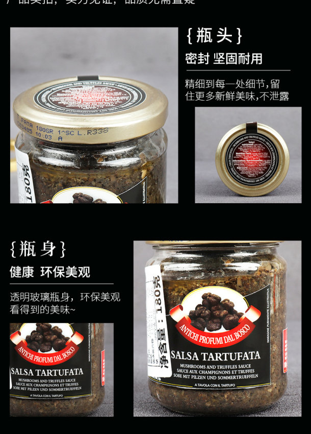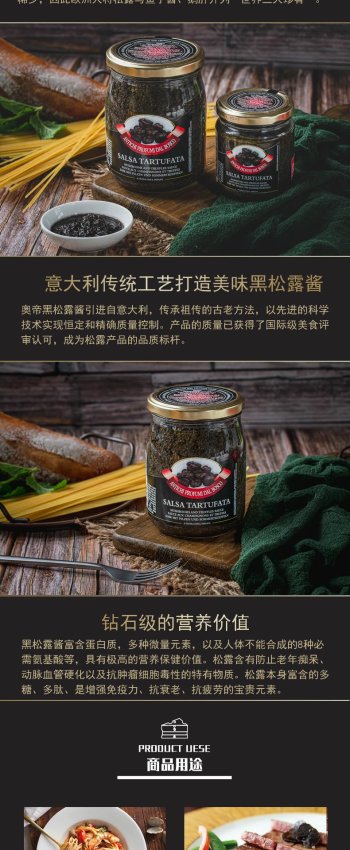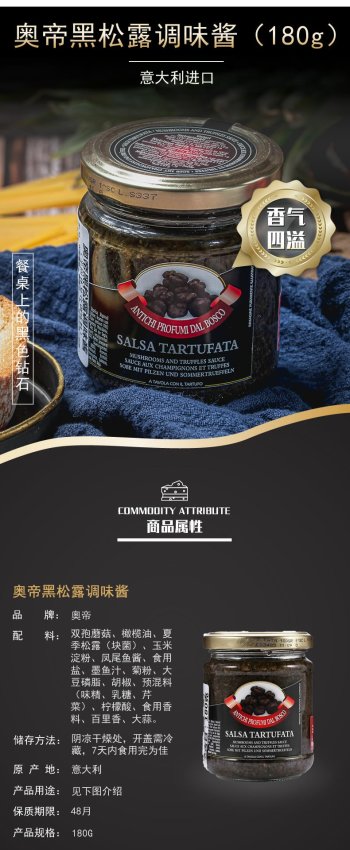 意大利奥帝黑松露调味酱 原装进口牛排意面拌面调味松露酱 180g/罐