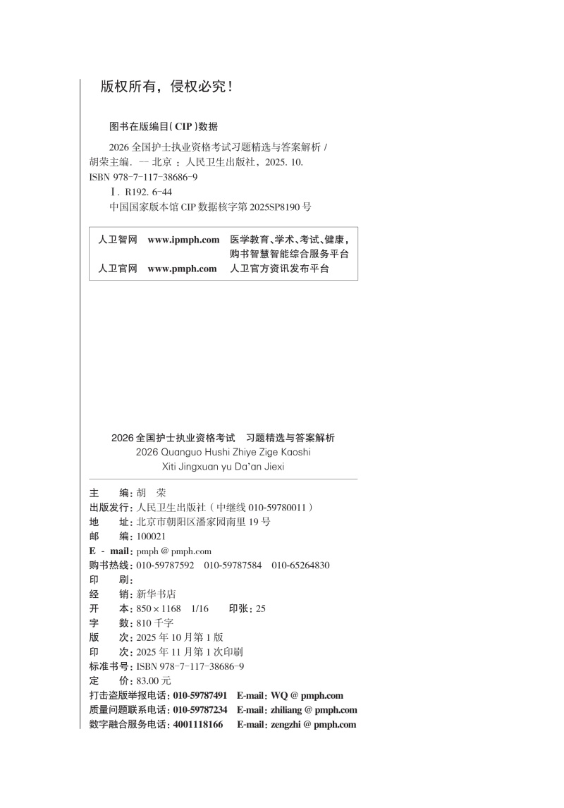 书名:2026全国护士执业资格考试 习题精选与答案解析