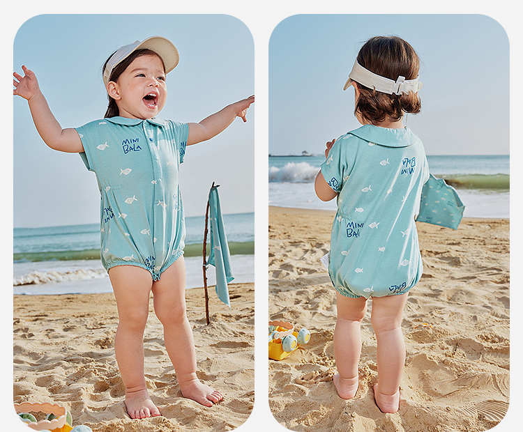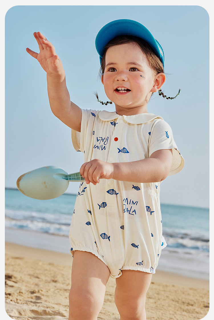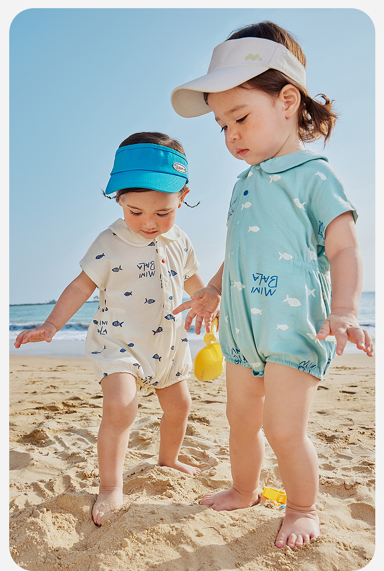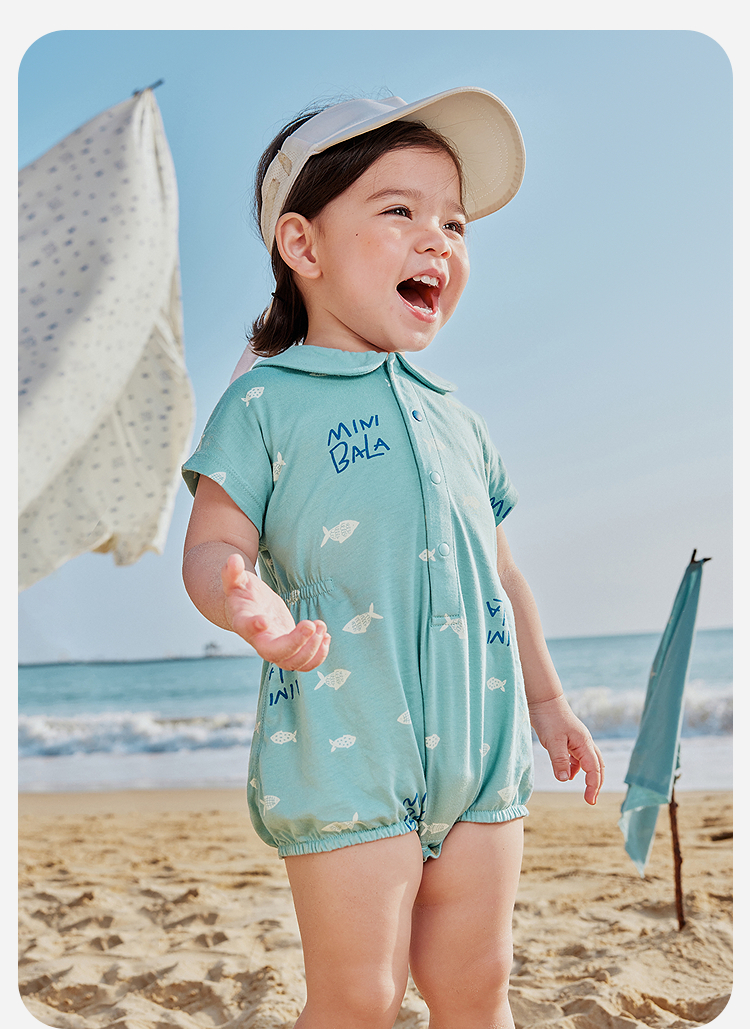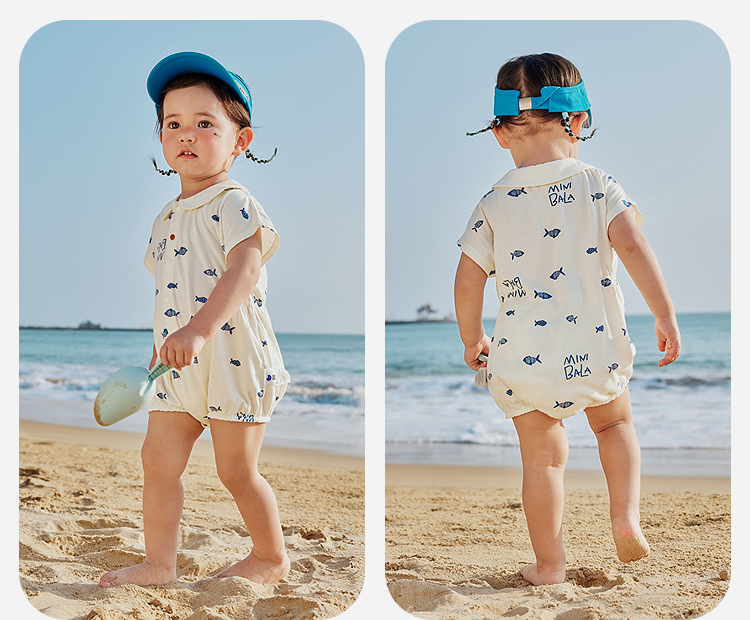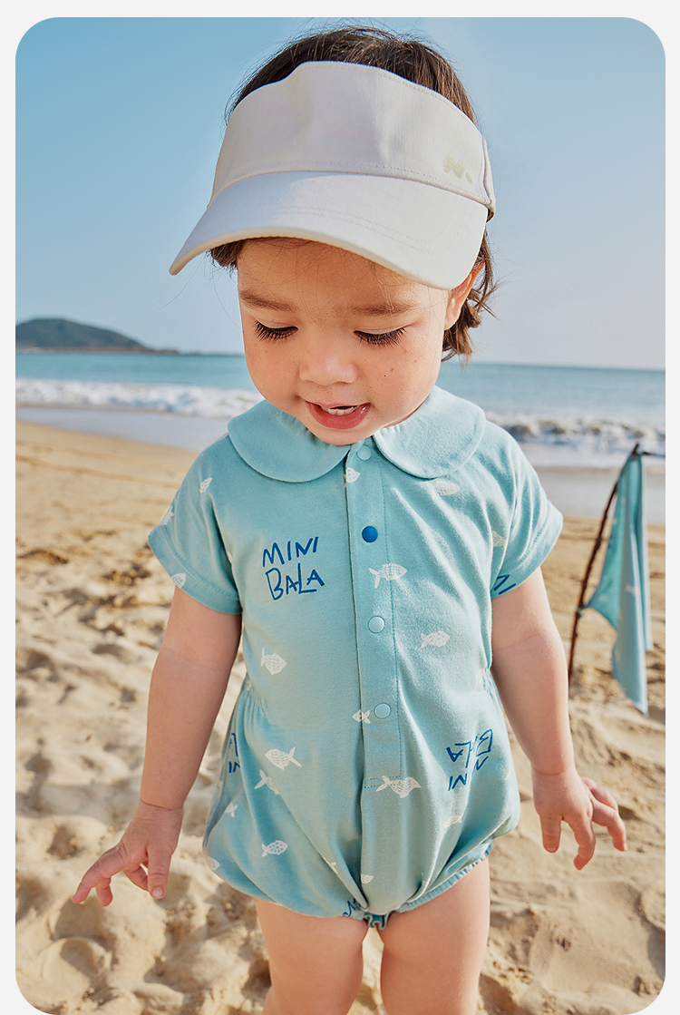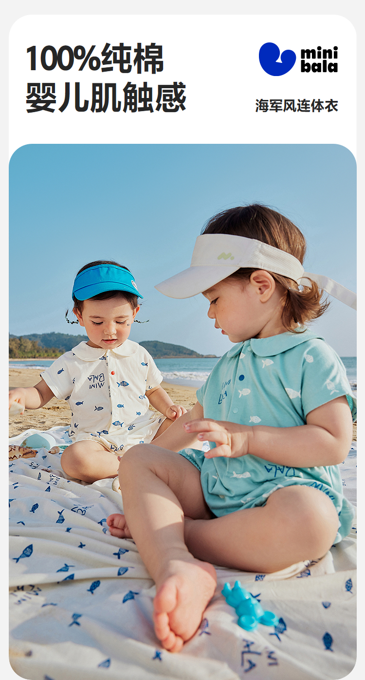 【纯棉亲肤】迷你巴拉外出连体衣男女童宝宝海军风夏季新款