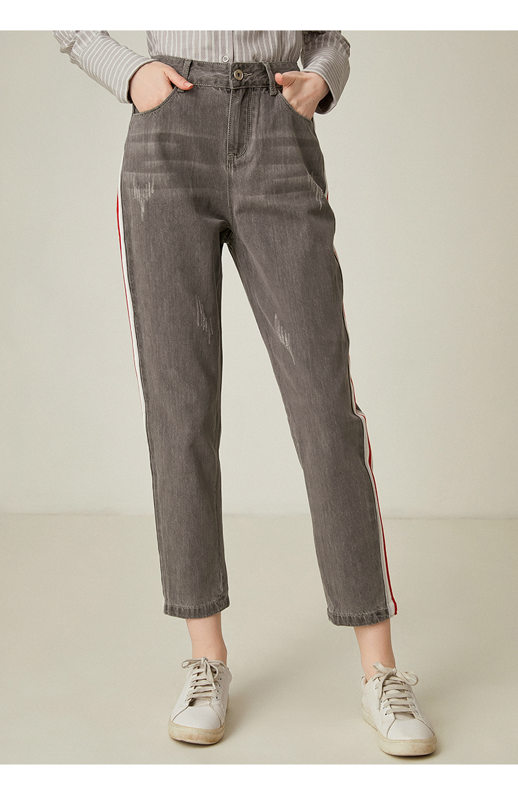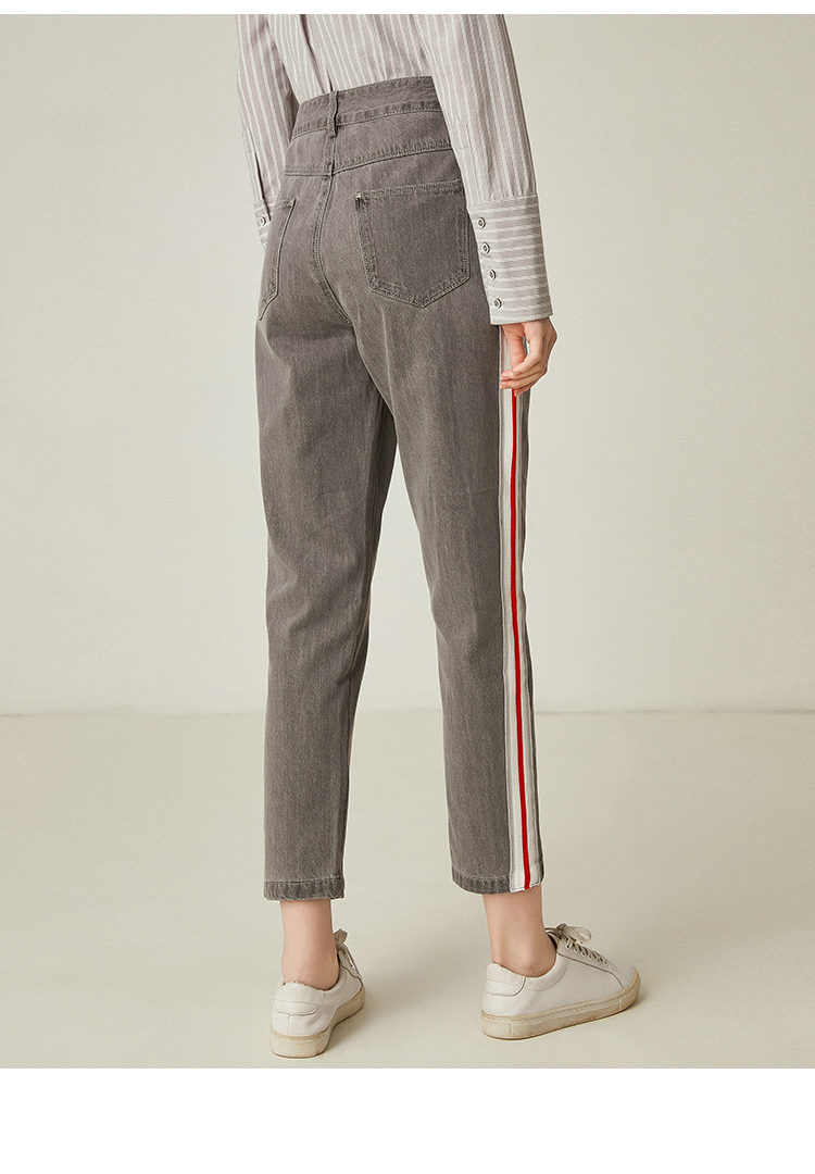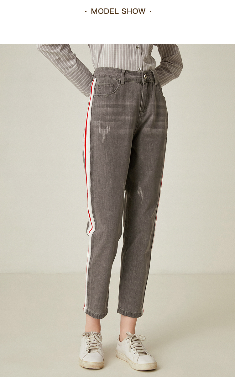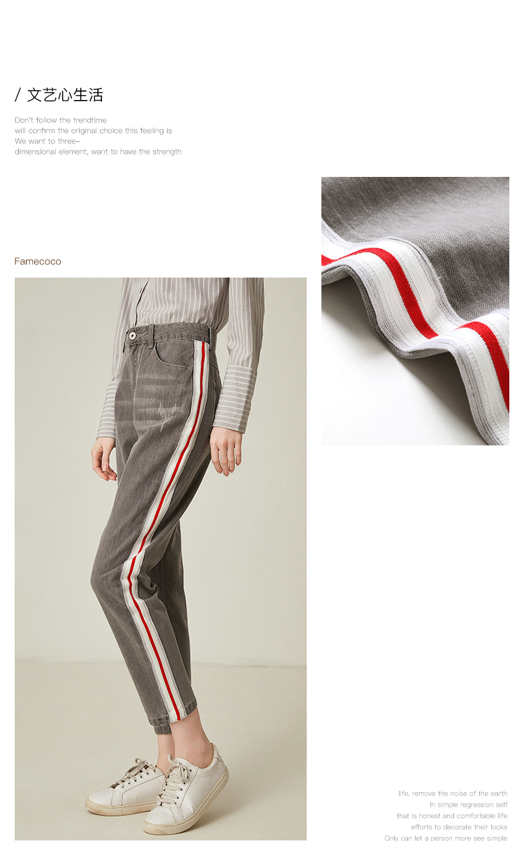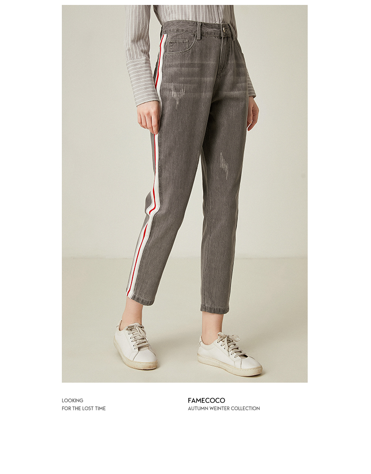 famecoco范可儿休闲牛仔裤直筒宽松灰色长裤F185GA132