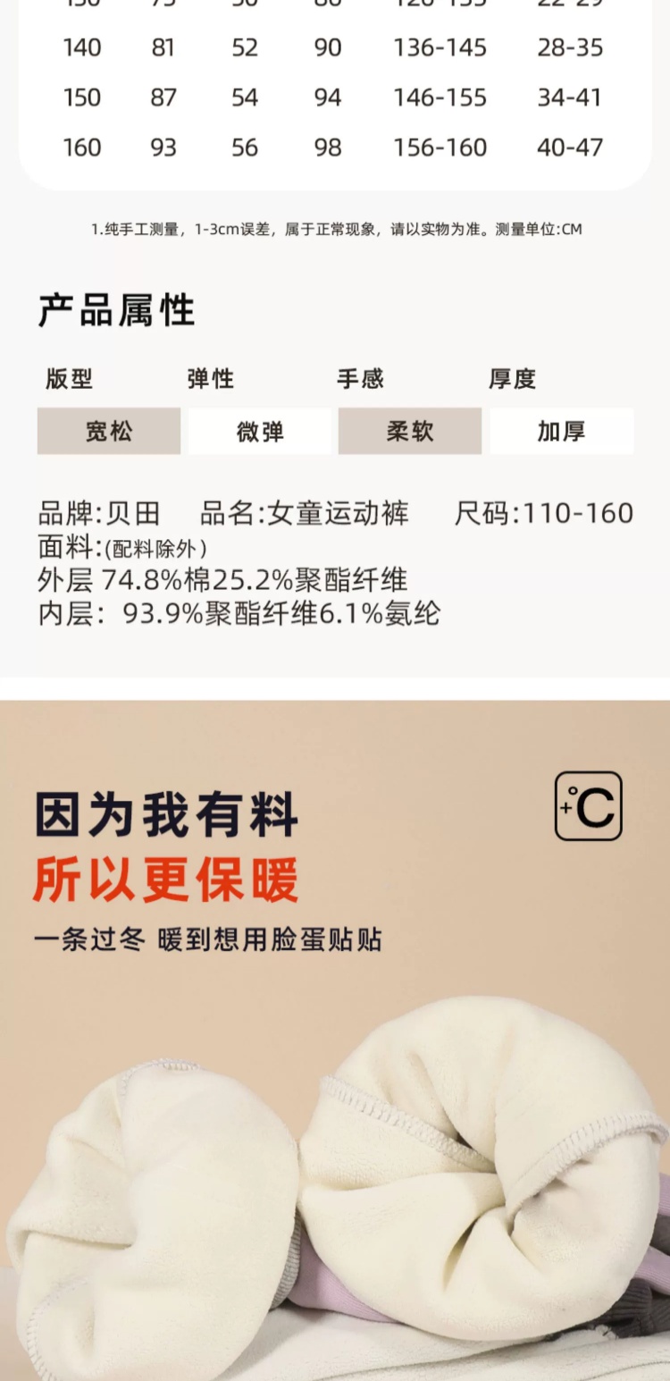 贝田2024新款冬季女童加绒裤子秋冬款儿童加厚保暖棉裤一体绒卫裤