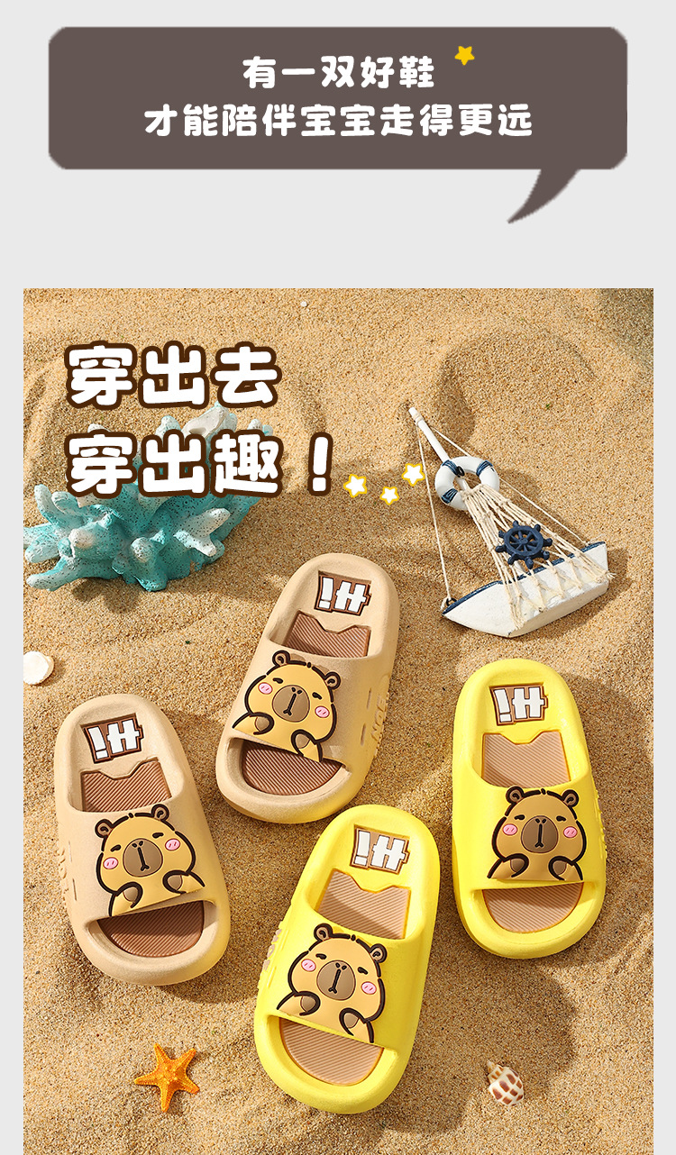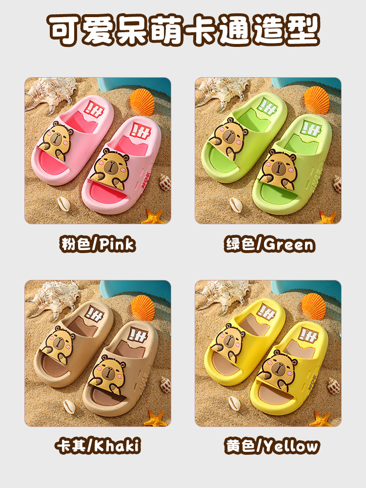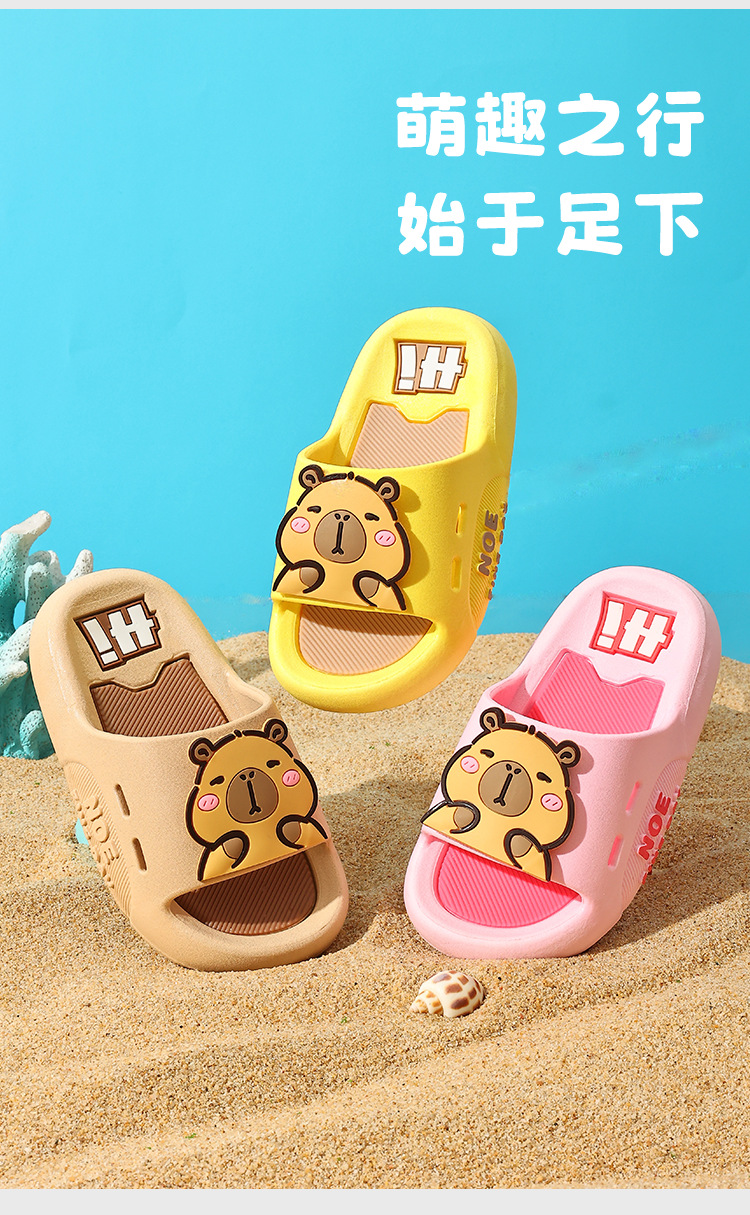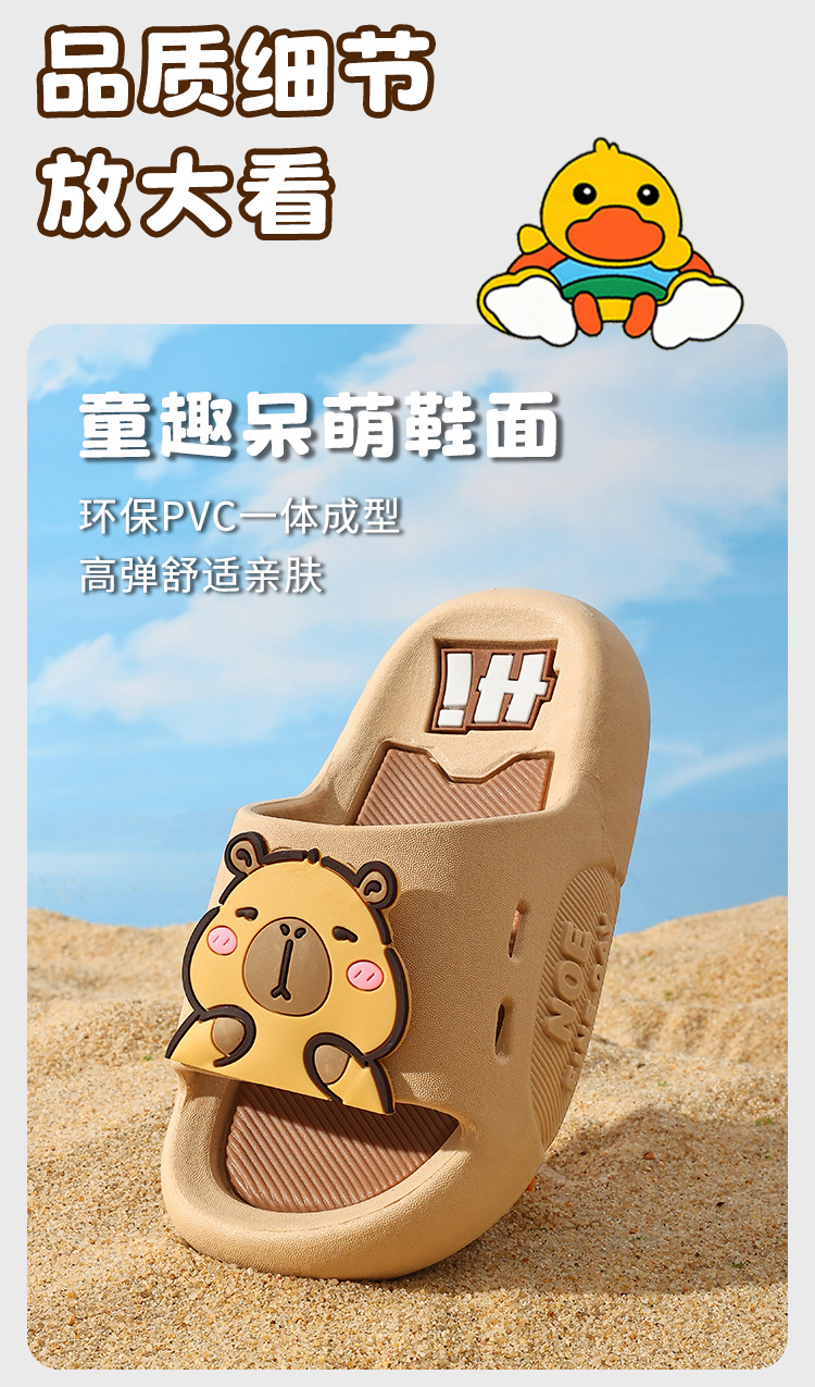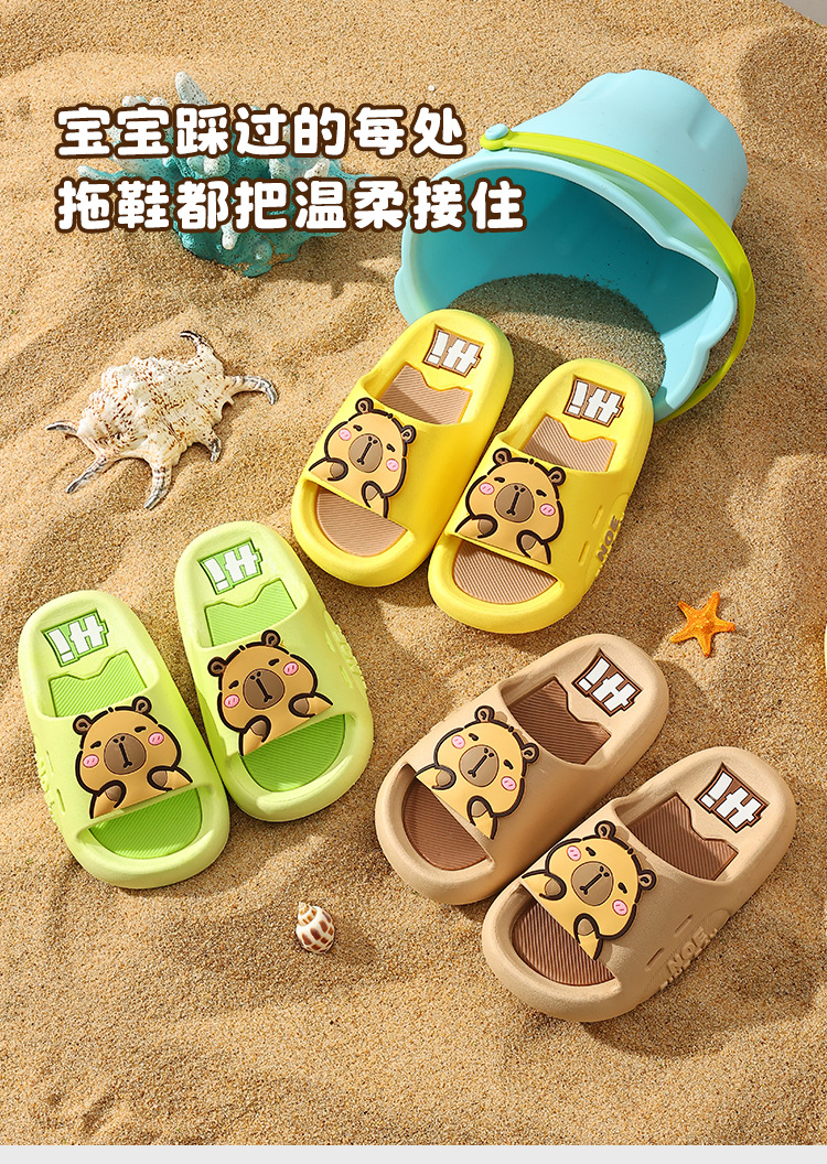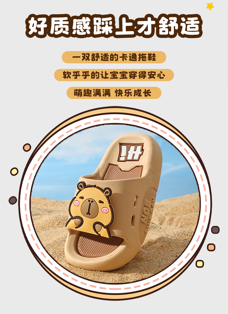 【透气防臭!云端踩屎感】2026夏季卡通儿童室内宝宝卡皮巴拉潮流款小学生鞋洗澡防滑防臭拖。xb