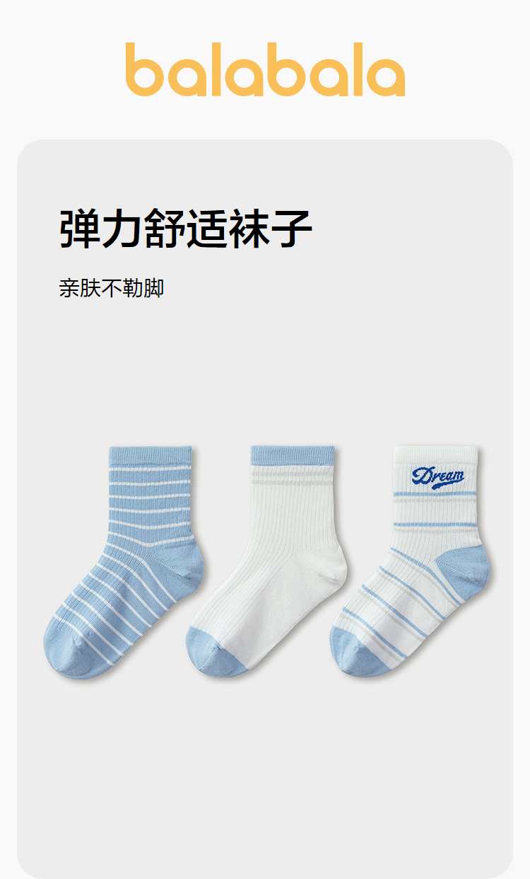 【商场同款】巴拉巴拉儿童袜子夏季网眼袜透气薄男童学生袜三双装