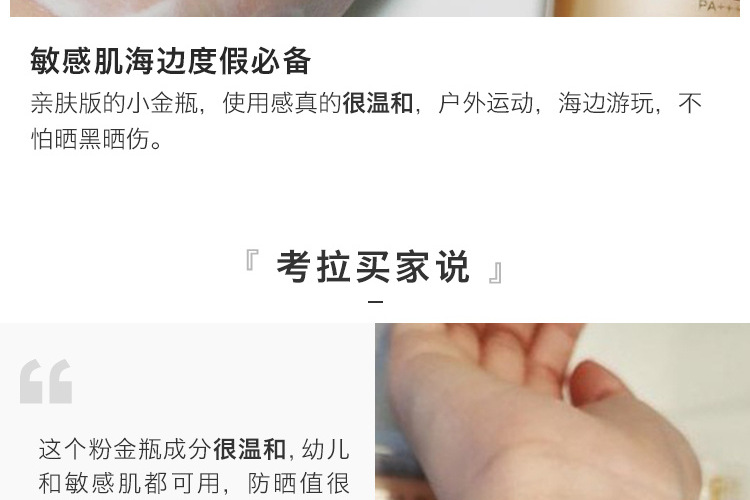 【跨境】安热沙「粉金瓶」敏感肌防晒露 SPF50+PA++++ 60毫升(效期到27年11月)