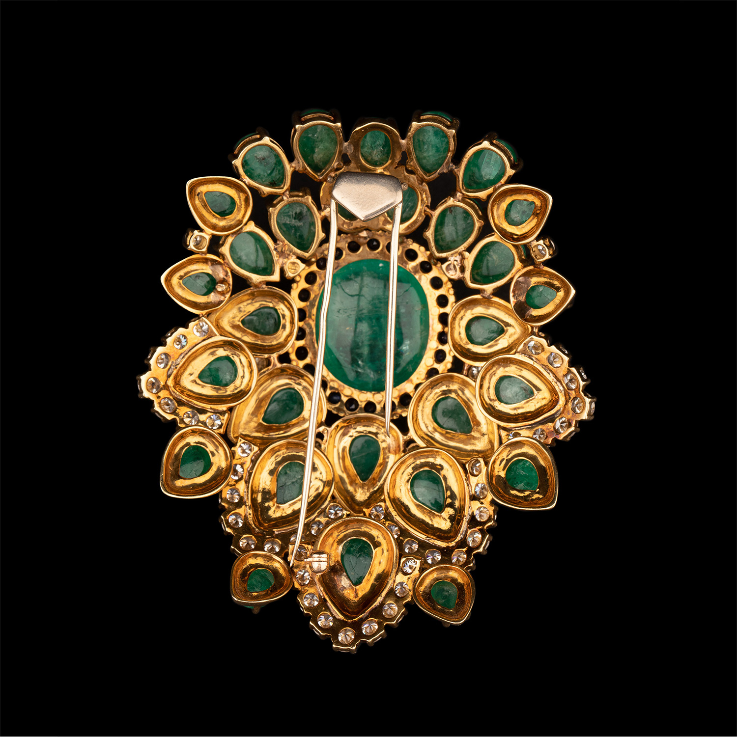 1970年代美国出品18K黄金镶嵌蓝宝石钻石及祖母绿胸针