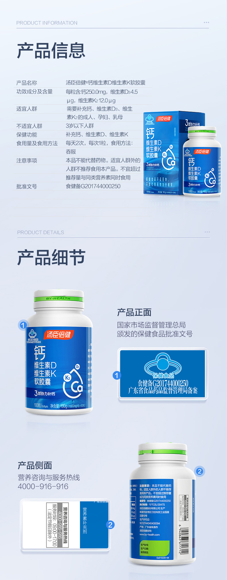 汤臣倍健钙维生素D维生素K软胶囊(120粒)彩盒装