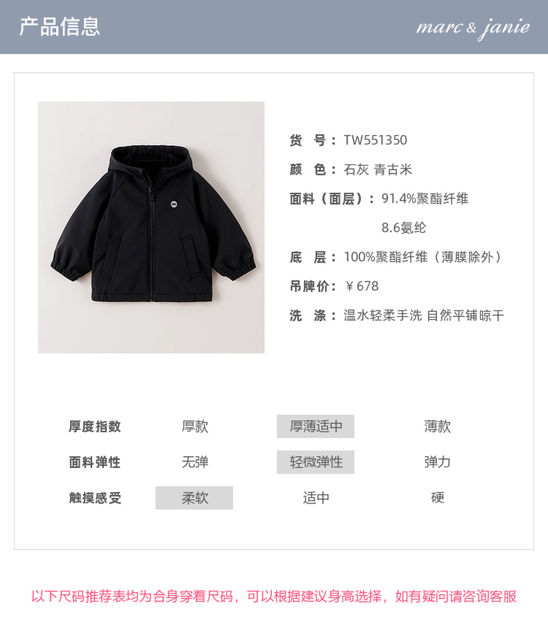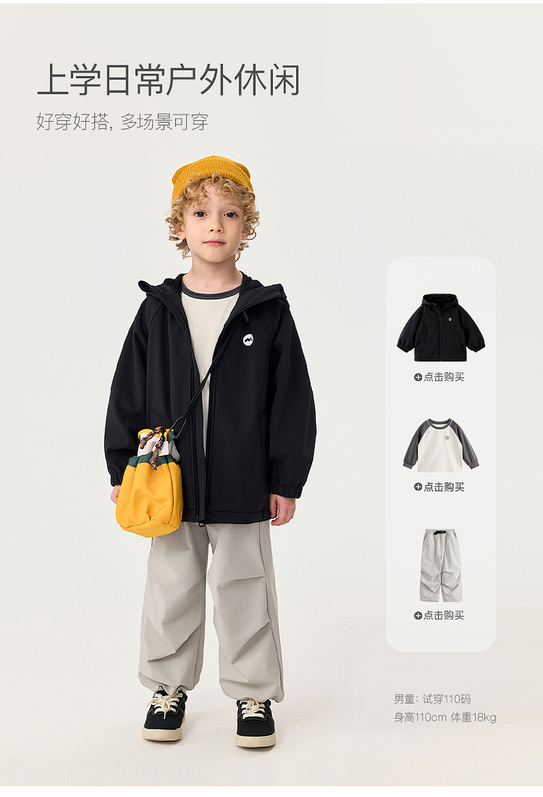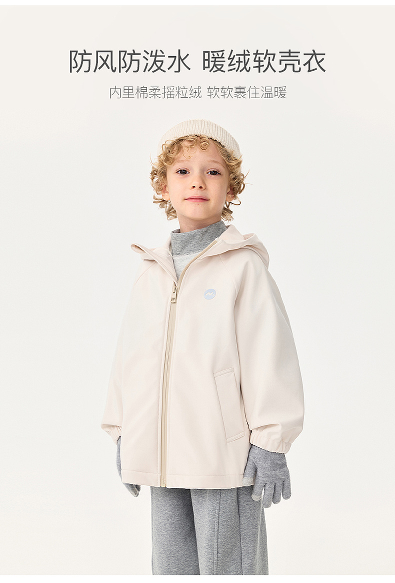 【无氟防泼水】马克珍妮男童加绒防风软壳外套2025年秋冬新款551350