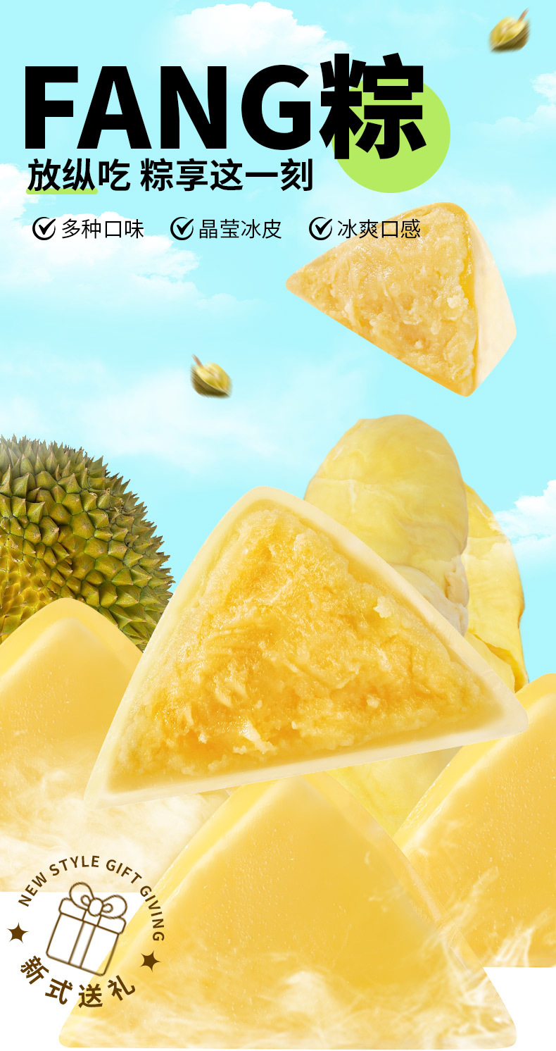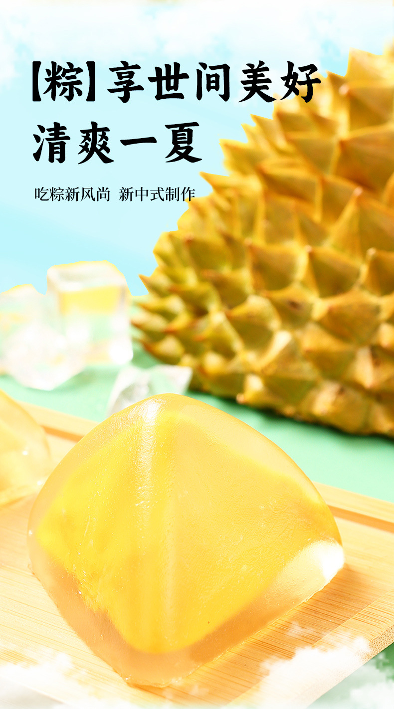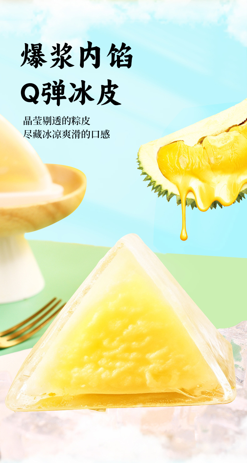 【一口‘’爆‘’浆,冰皮水晶榴莲粽子】冰皮水晶粽子网红甜粽冰心粽,真榴莲大于40%粽享一刻,水果味开袋即食无需蒸煮端午送礼糕点点心QQ