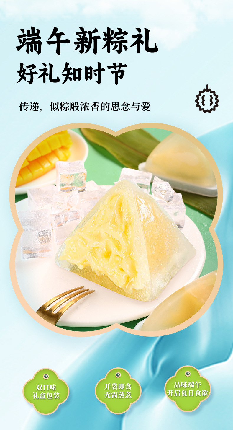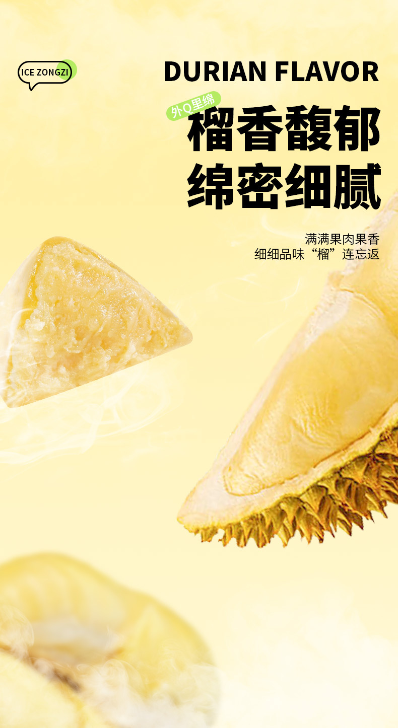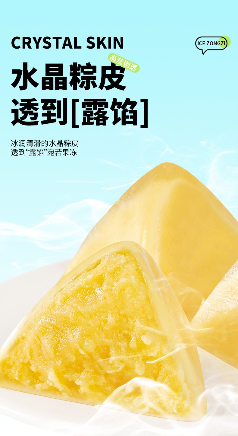【一口‘’爆‘’浆,冰皮水晶榴莲粽子】冰皮水晶粽子网红甜粽冰心粽,真榴莲大于40%粽享一刻,水果味开袋即食无需蒸煮端午送礼糕点点心QQ