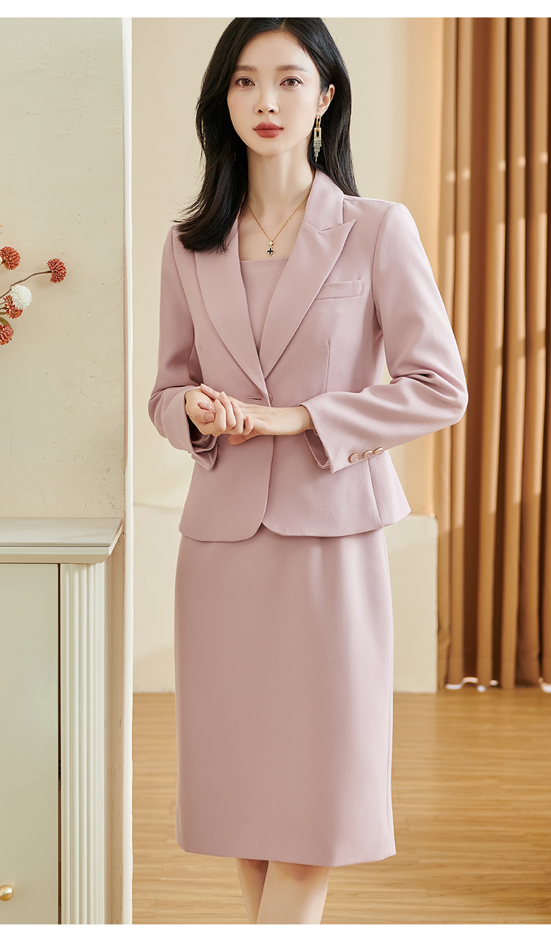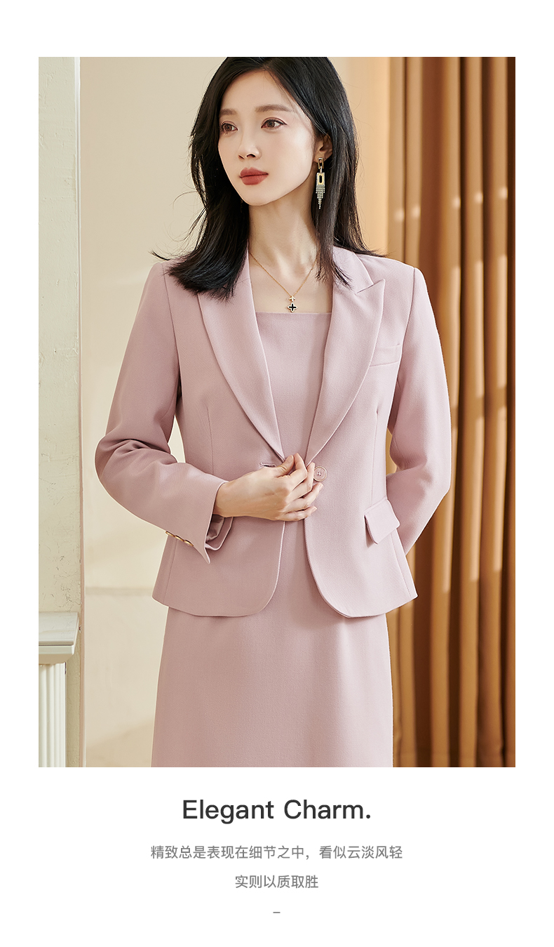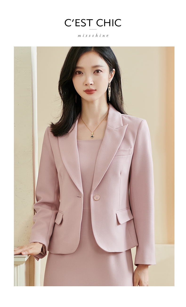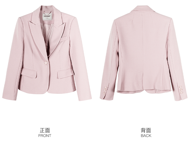 米思阳2026春季新款温柔气质粉色西装修身一粒扣长袖外套女士3331
