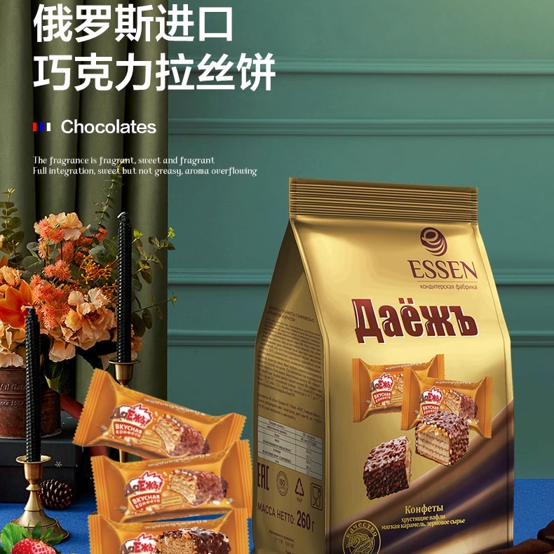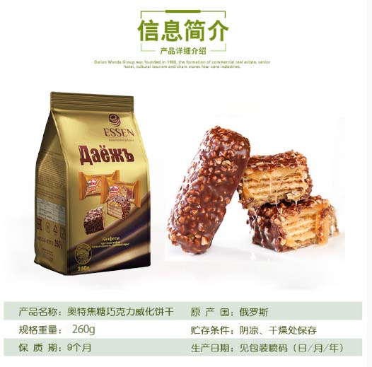 【中欧班列精选】俄罗斯进口新款阿孔特奥特焦糖巧克力拉丝饼干260g/袋
