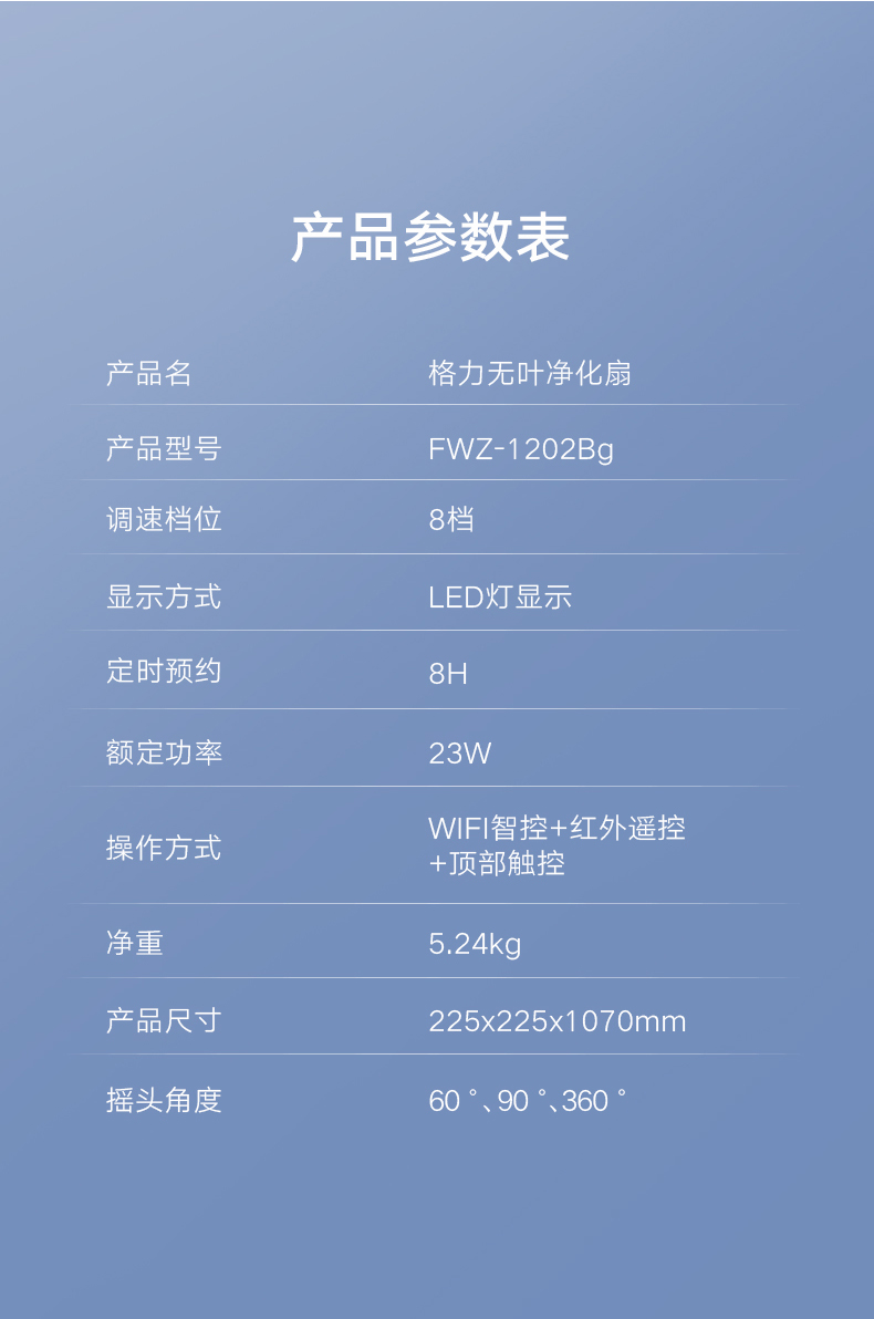 GREE 格力 家用无叶净化风扇 WIFI遥控 FWZ-1202Bg