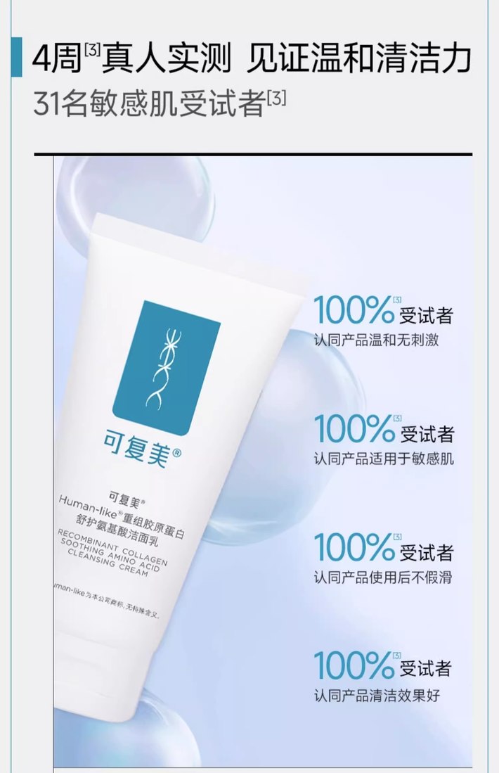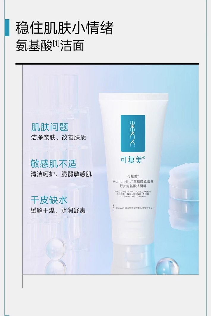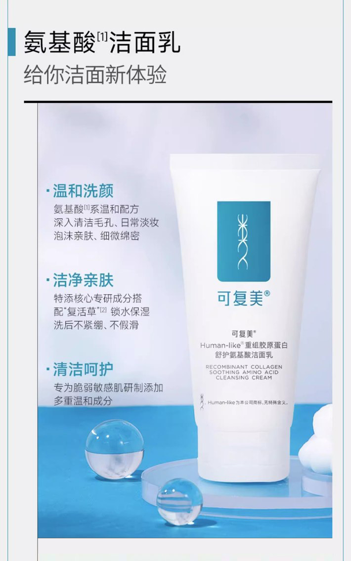 可复美Human-like重组胶原蛋白舒护氨基酸洁面乳 控油洗面奶120g