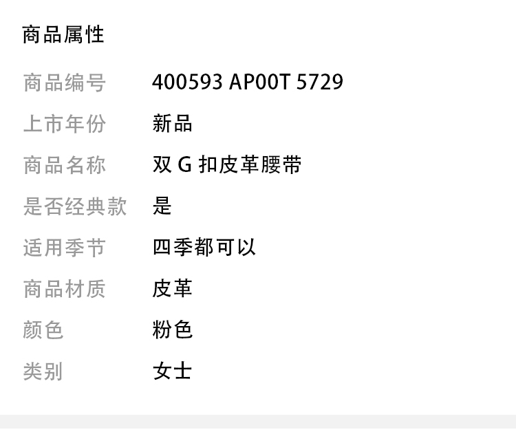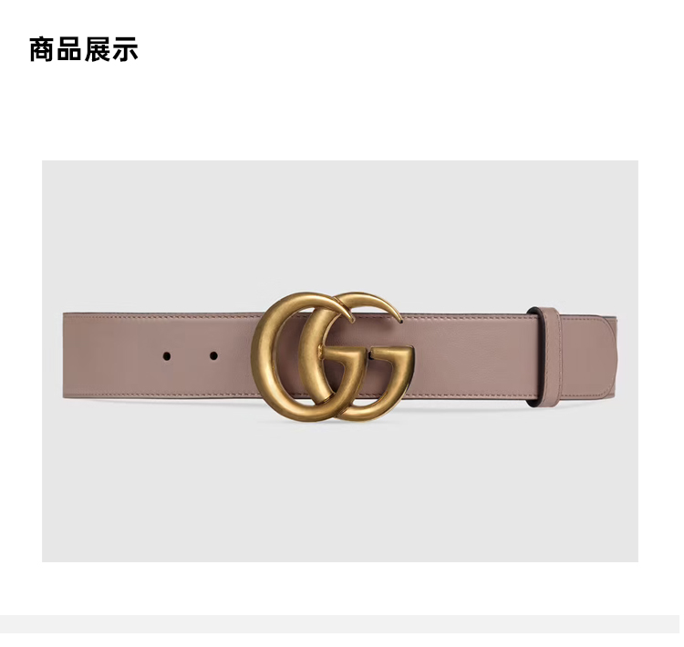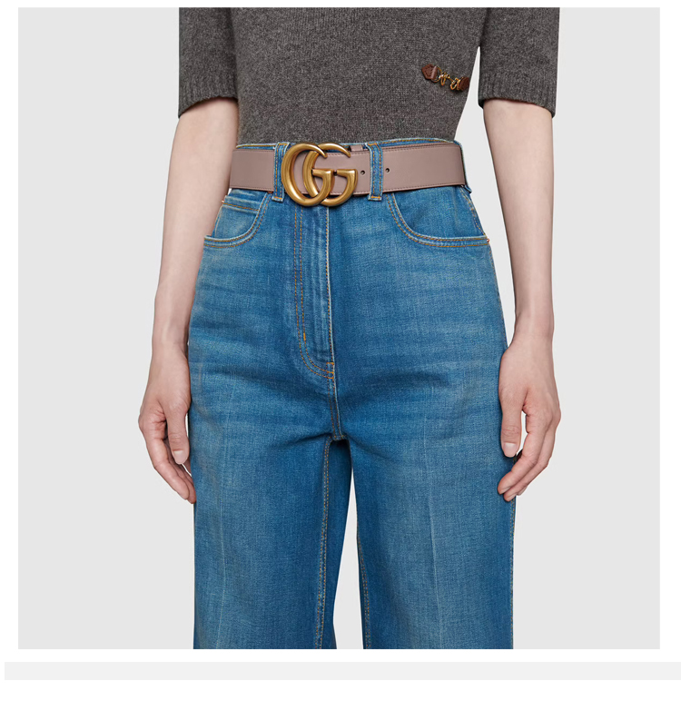 GUCCI 古驰 女士双 G 搭扣皮革腰带 杏色 400593 AP00T 5729