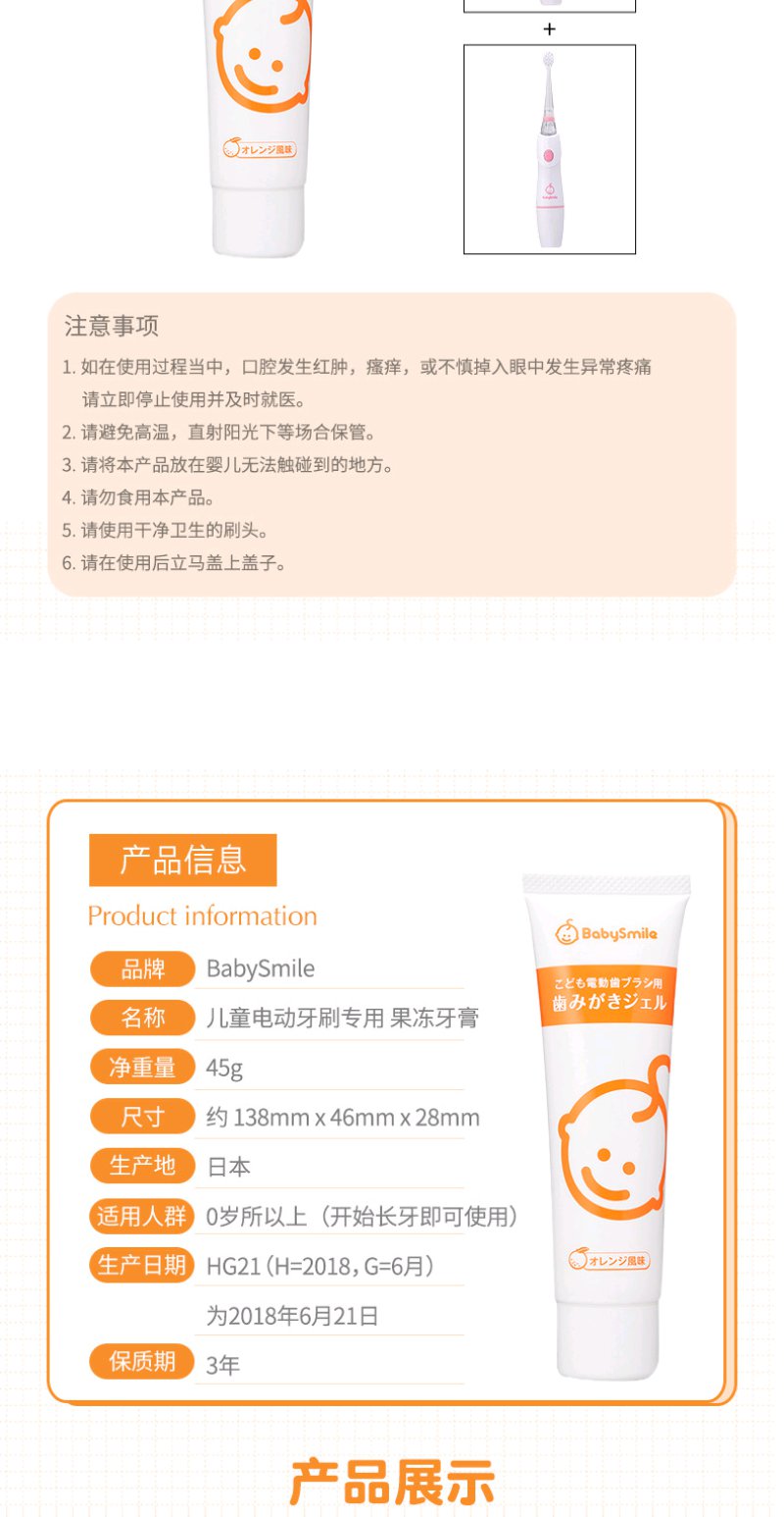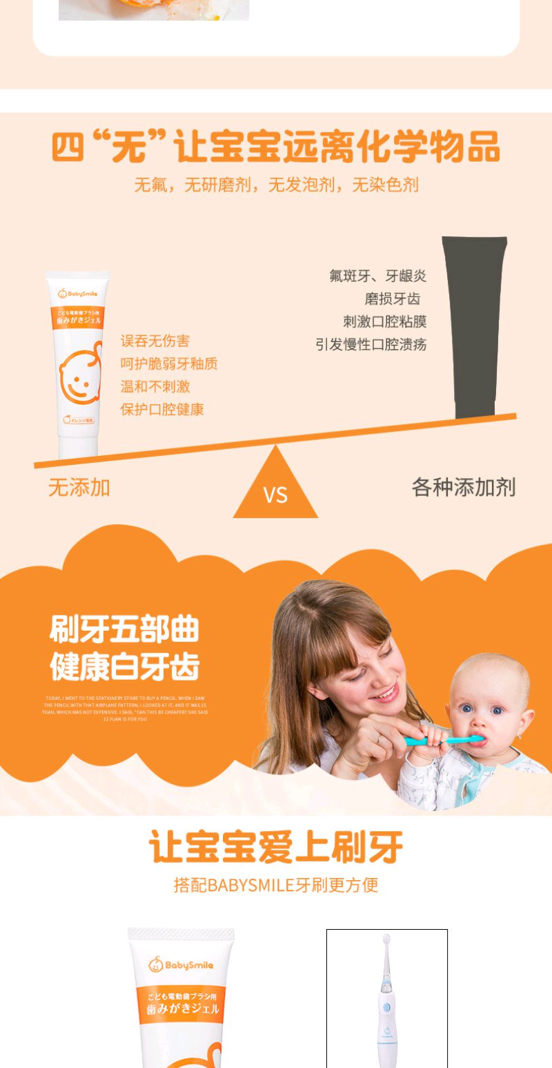 (超值)日本babysmile 儿童牙膏 甜橙味45g
