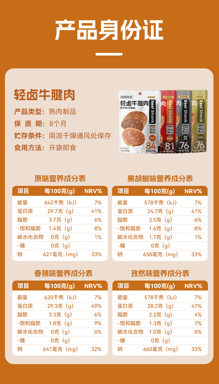 【袋鼠先生】高蛋白轻卤牛腱肉55g 原味/黑胡椒味