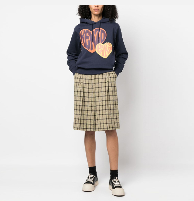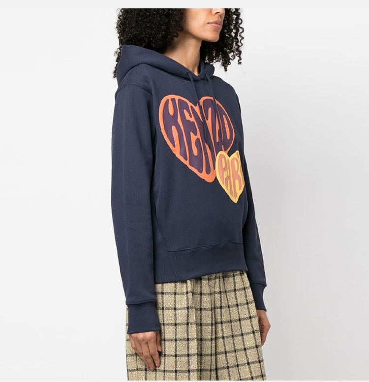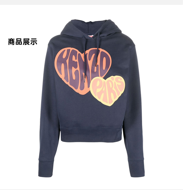 KENZO 高田贤三 女士心形徽标印花棉质连帽卫衣 深蓝色 FD62 SW076 4MC 77