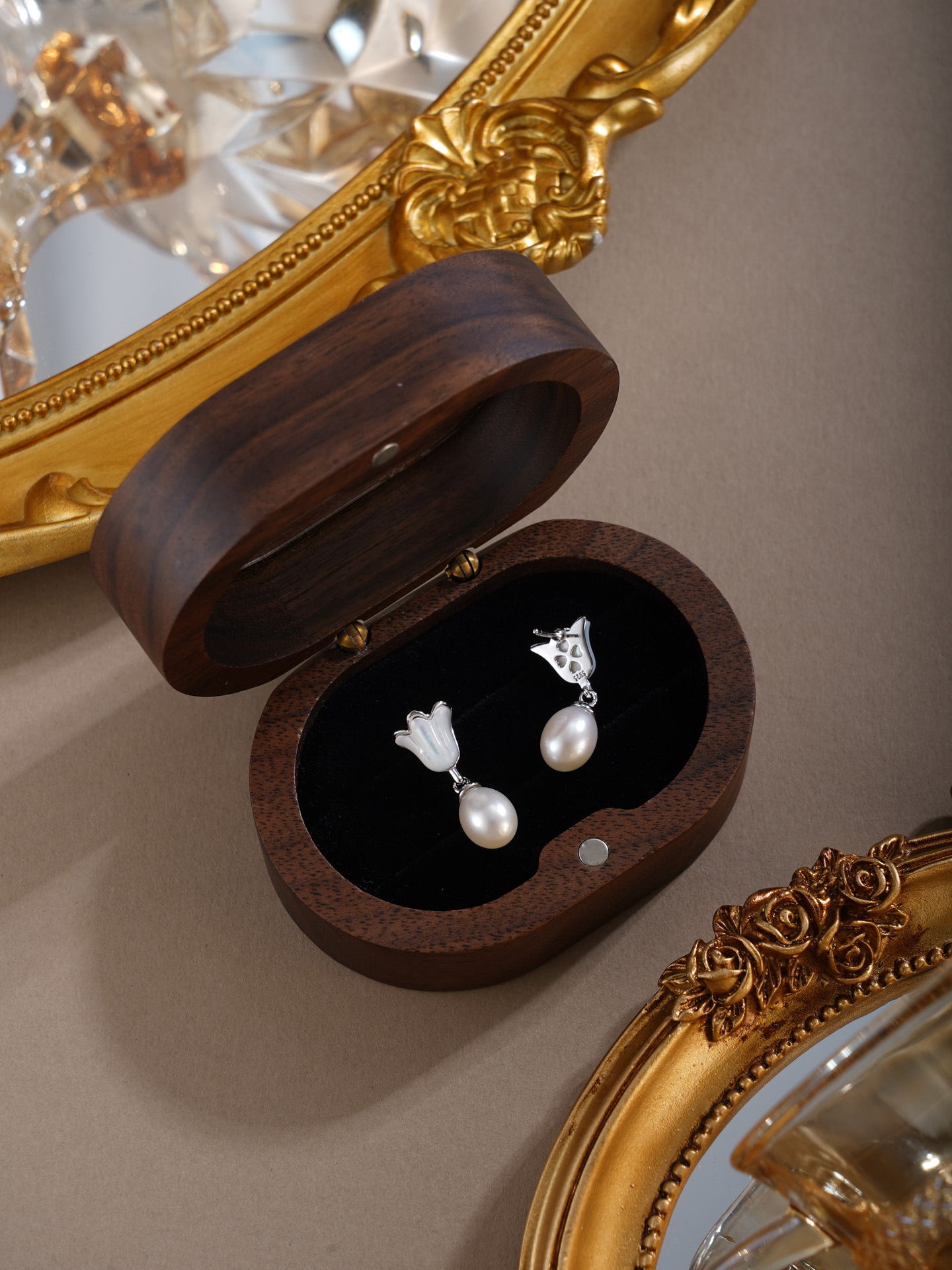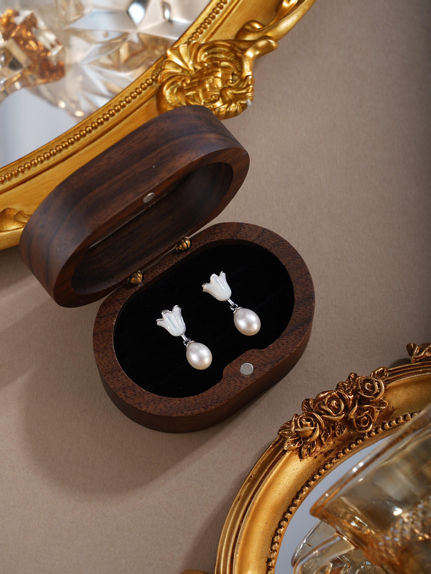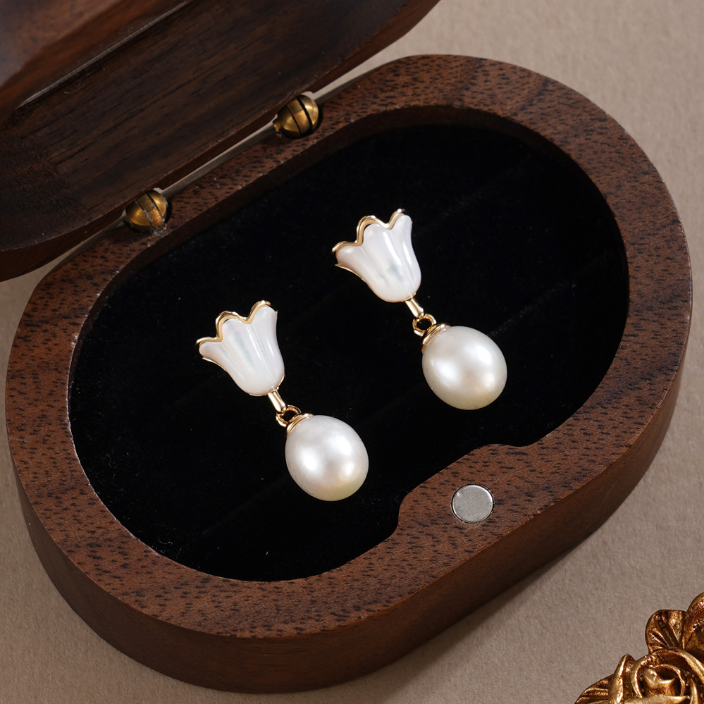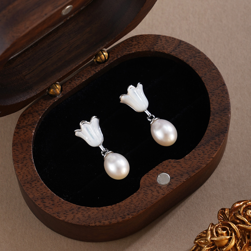 子佩集【森系铃音】银S925珍珠惜王妃耳钉【YE0990】双色玉兰花2602