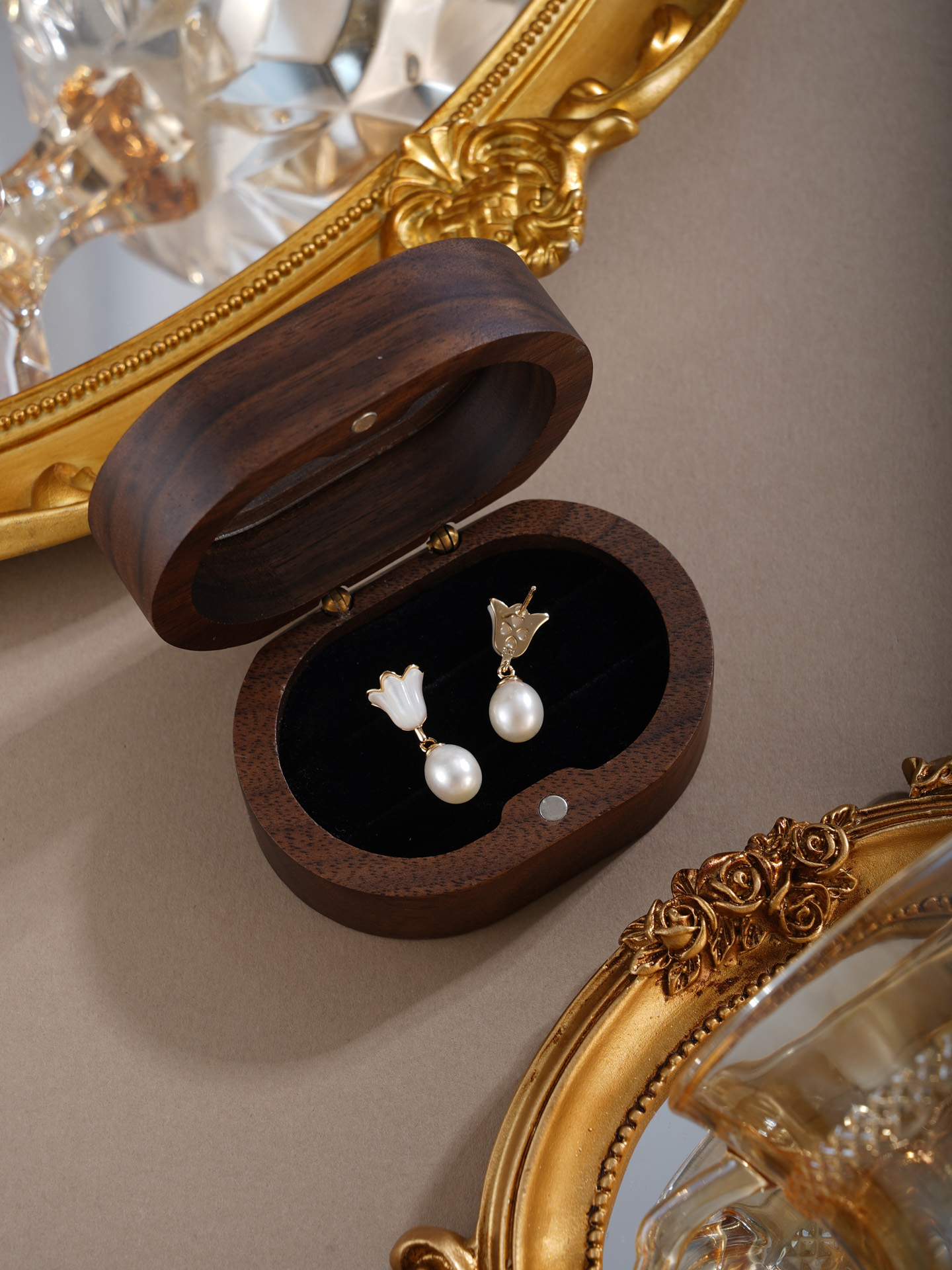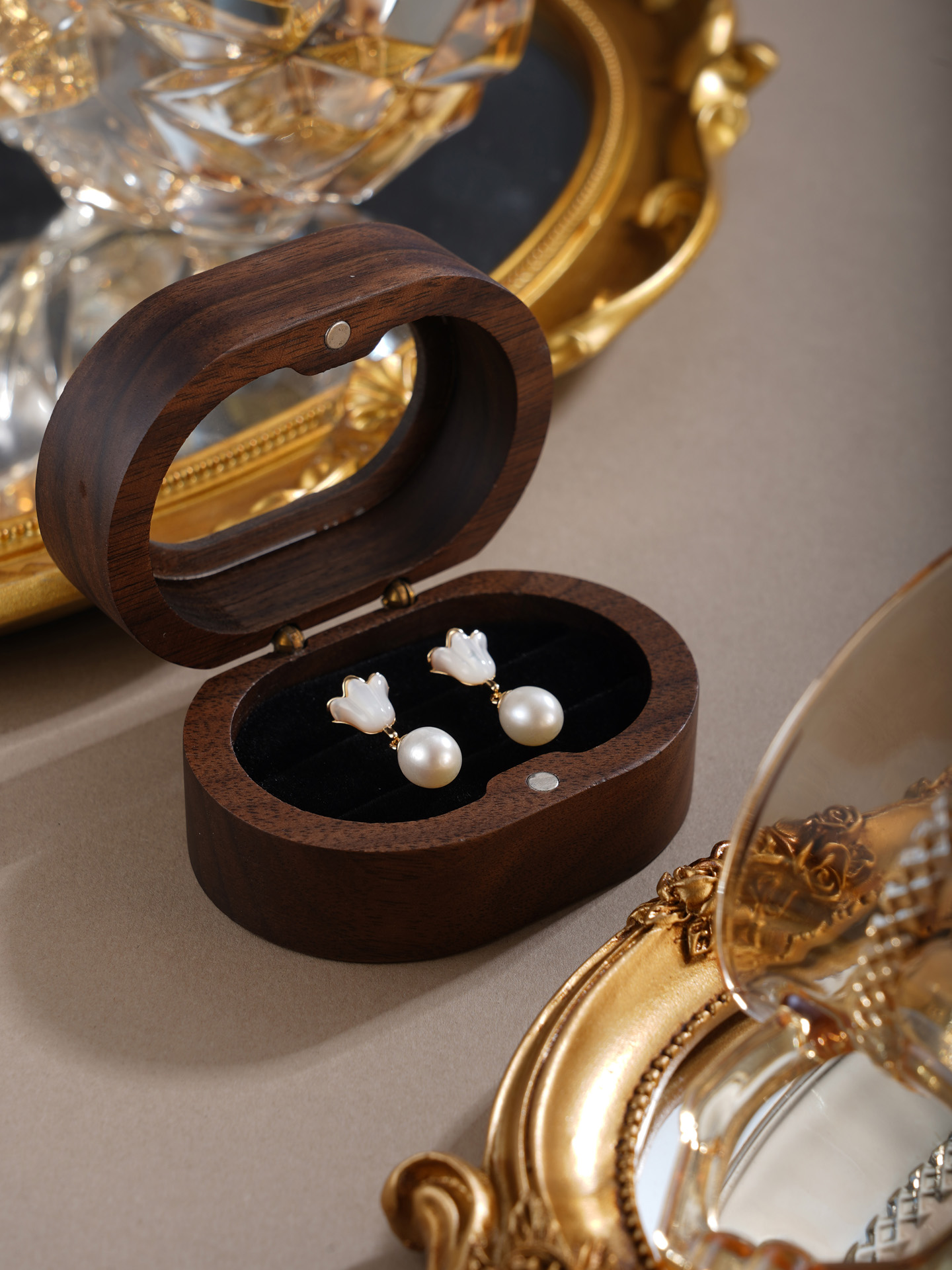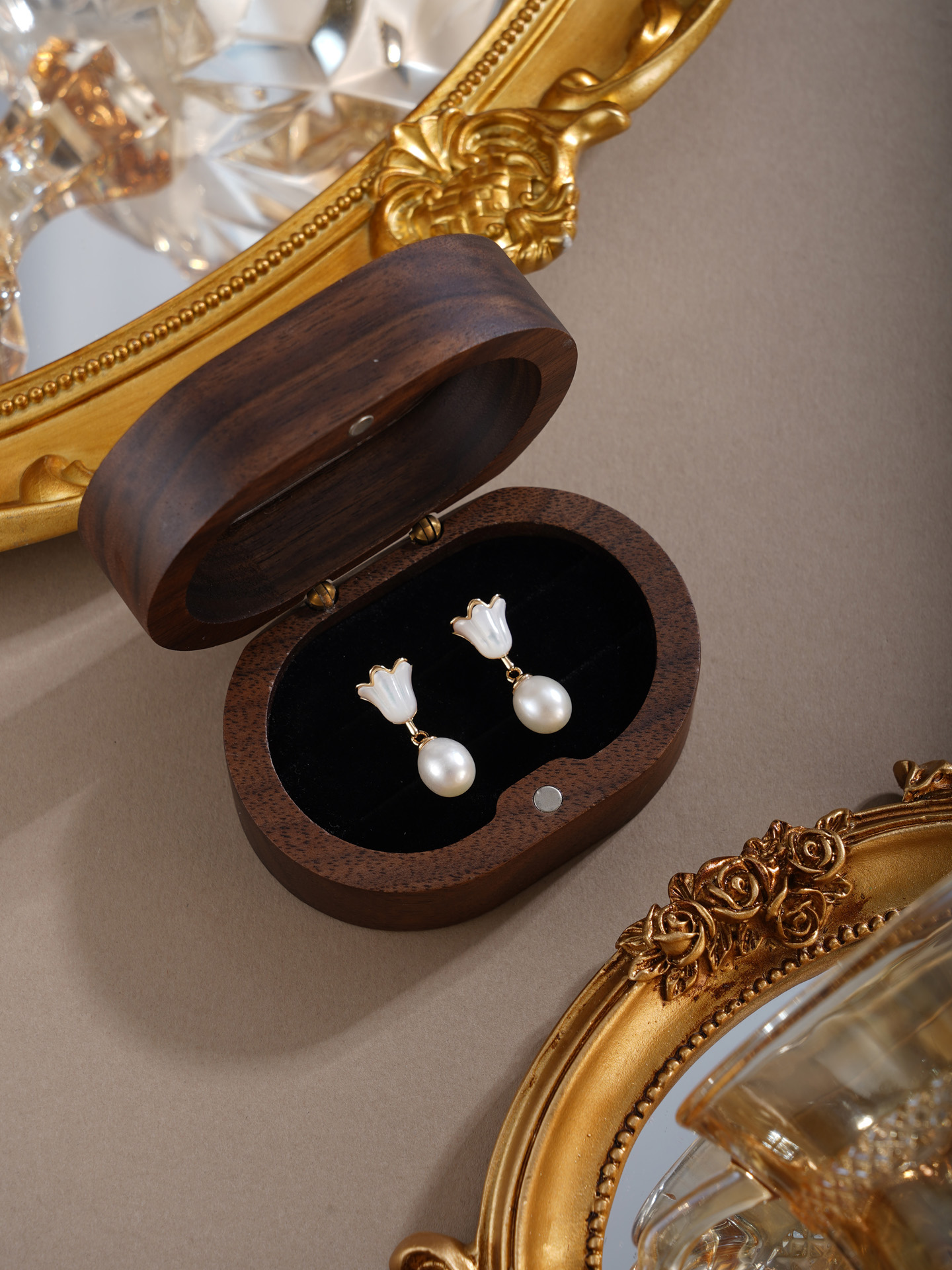 子佩集【森系铃音】银S925珍珠惜王妃耳钉【YE0990】双色玉兰花2602