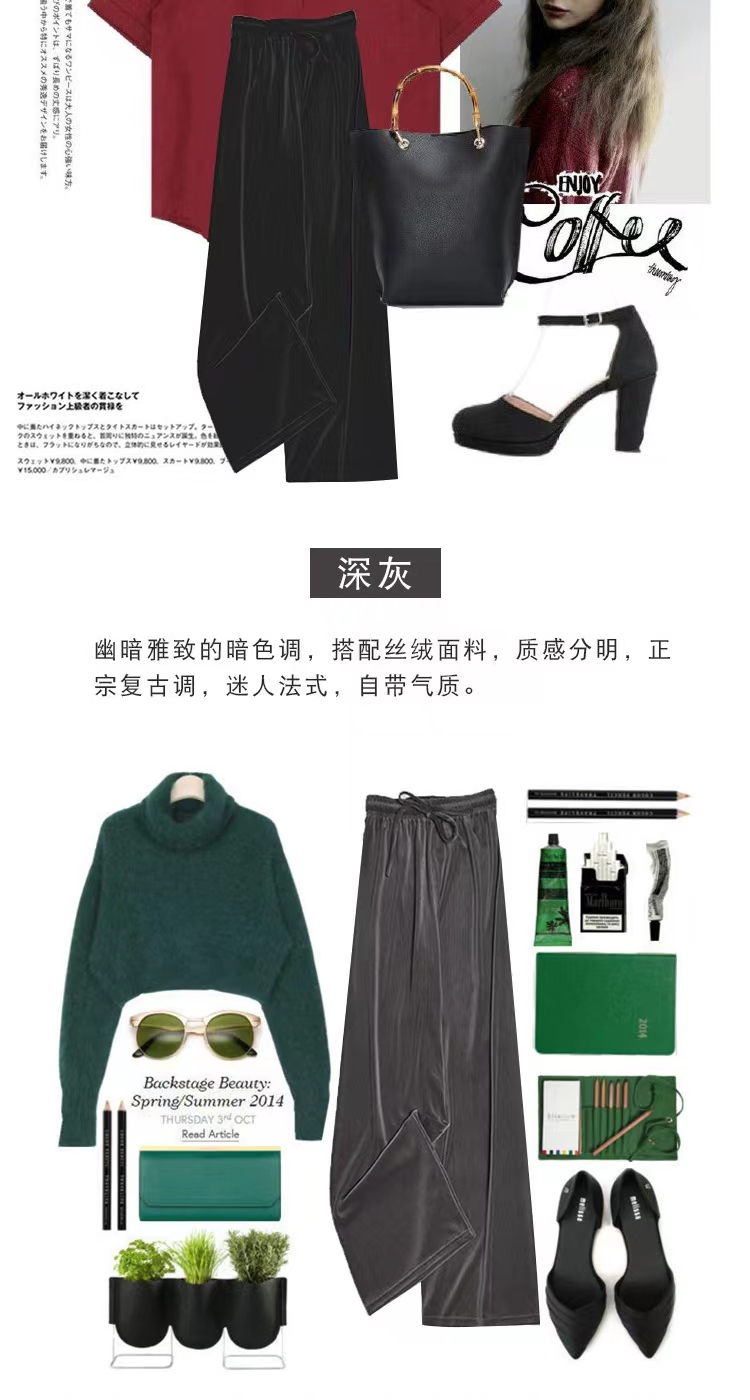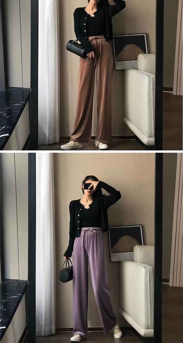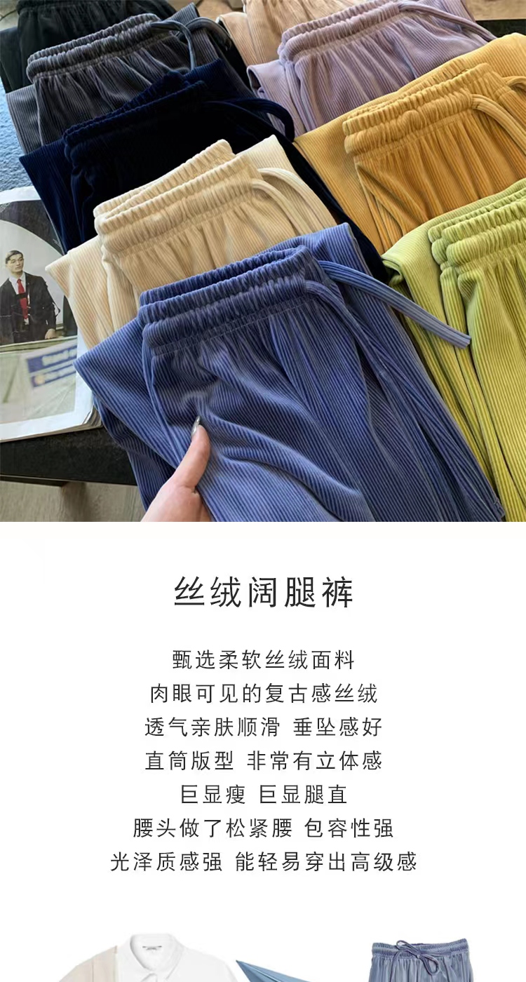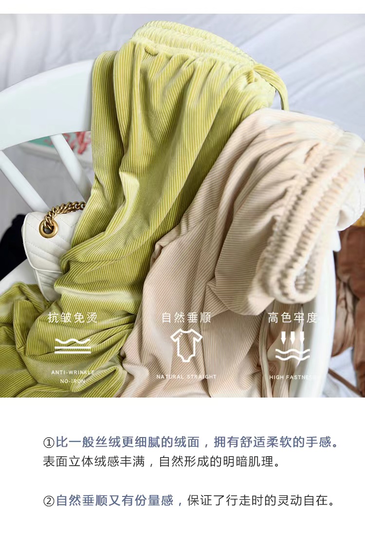 【一秒藏肉的入秋神裤】千吉娜Chinina 天鹅绒阔腿裤 时尚百搭 瘦百搭,贴合舒适,别致有型